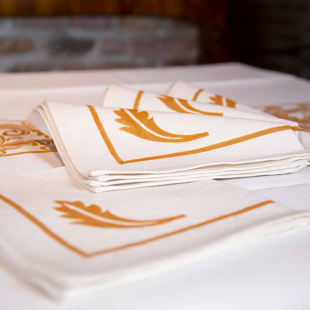 Servilleta lino mixto con estampado a mano Pieza única Made in Italy, 6 piezas