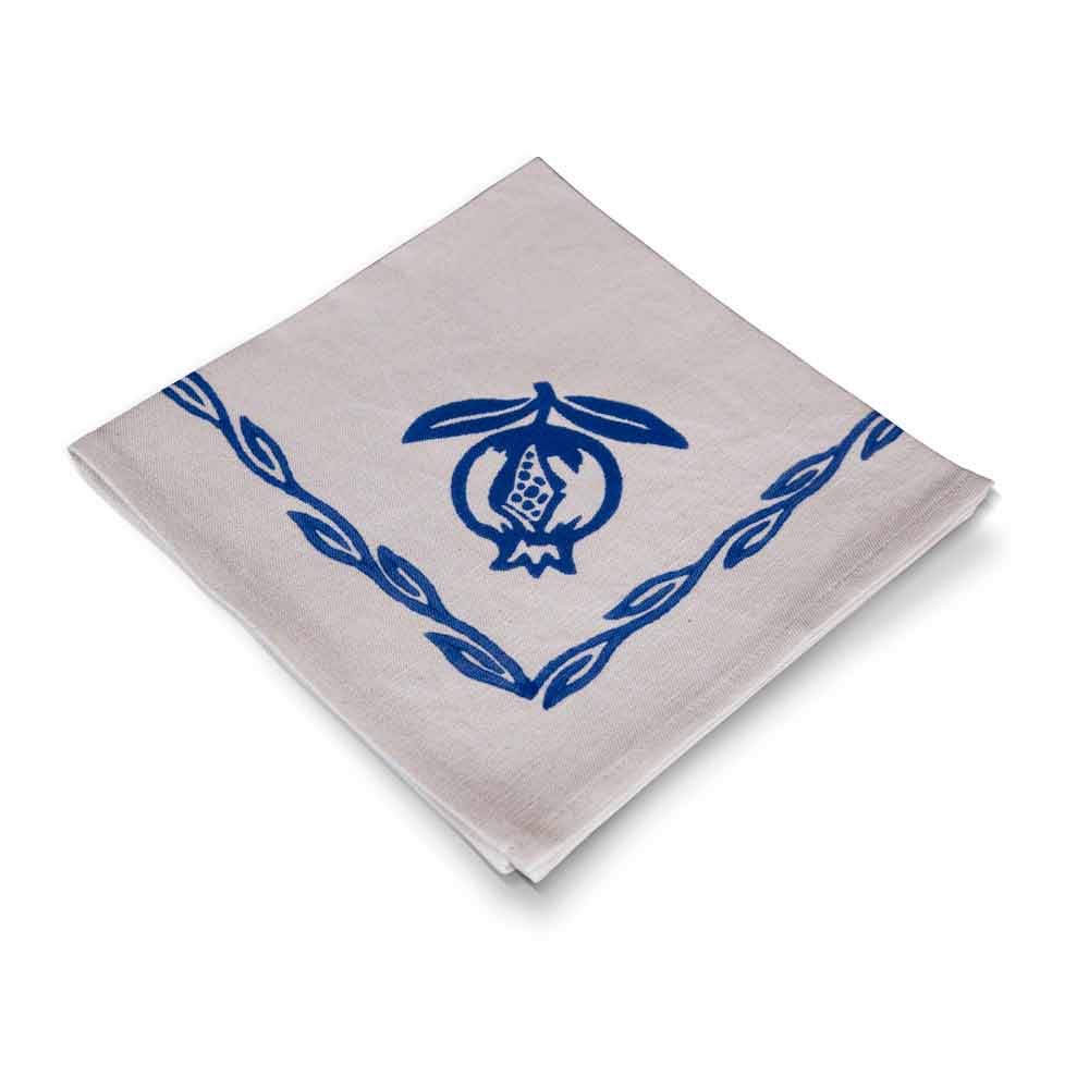 Servilleta de alta artesanía italiana en lino y algodón, realizada con una técnica de fabricación antigua con impresión artística a mano sobre telas finas, óxido o diseño azul, pieza única.