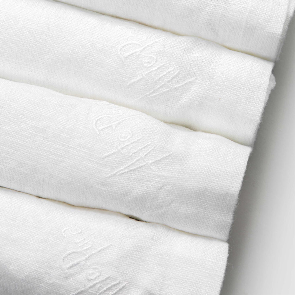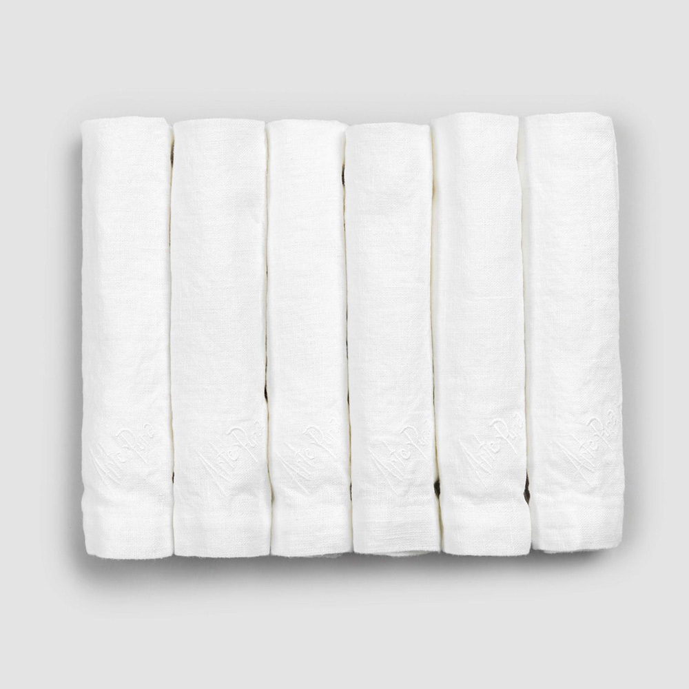 servicio de 6 servilletas de lino blanco pesado con borde plegable.