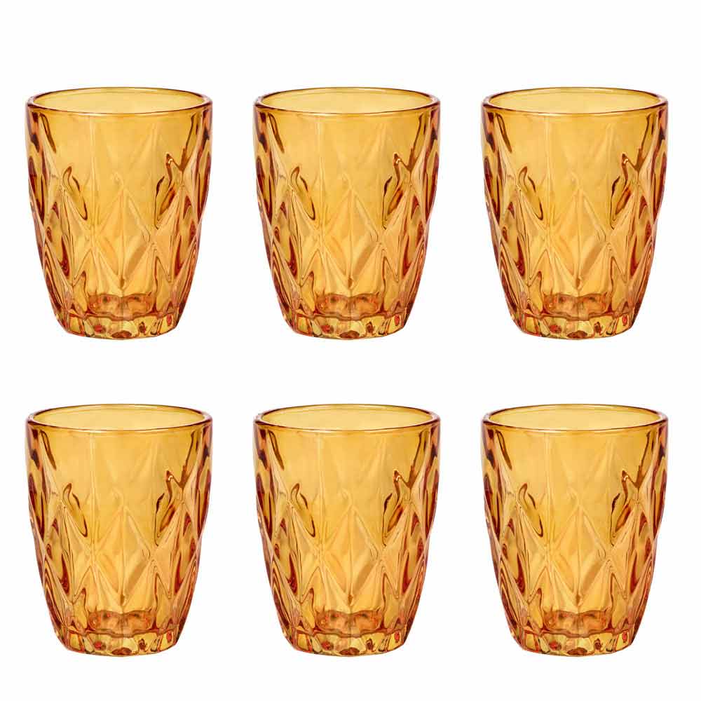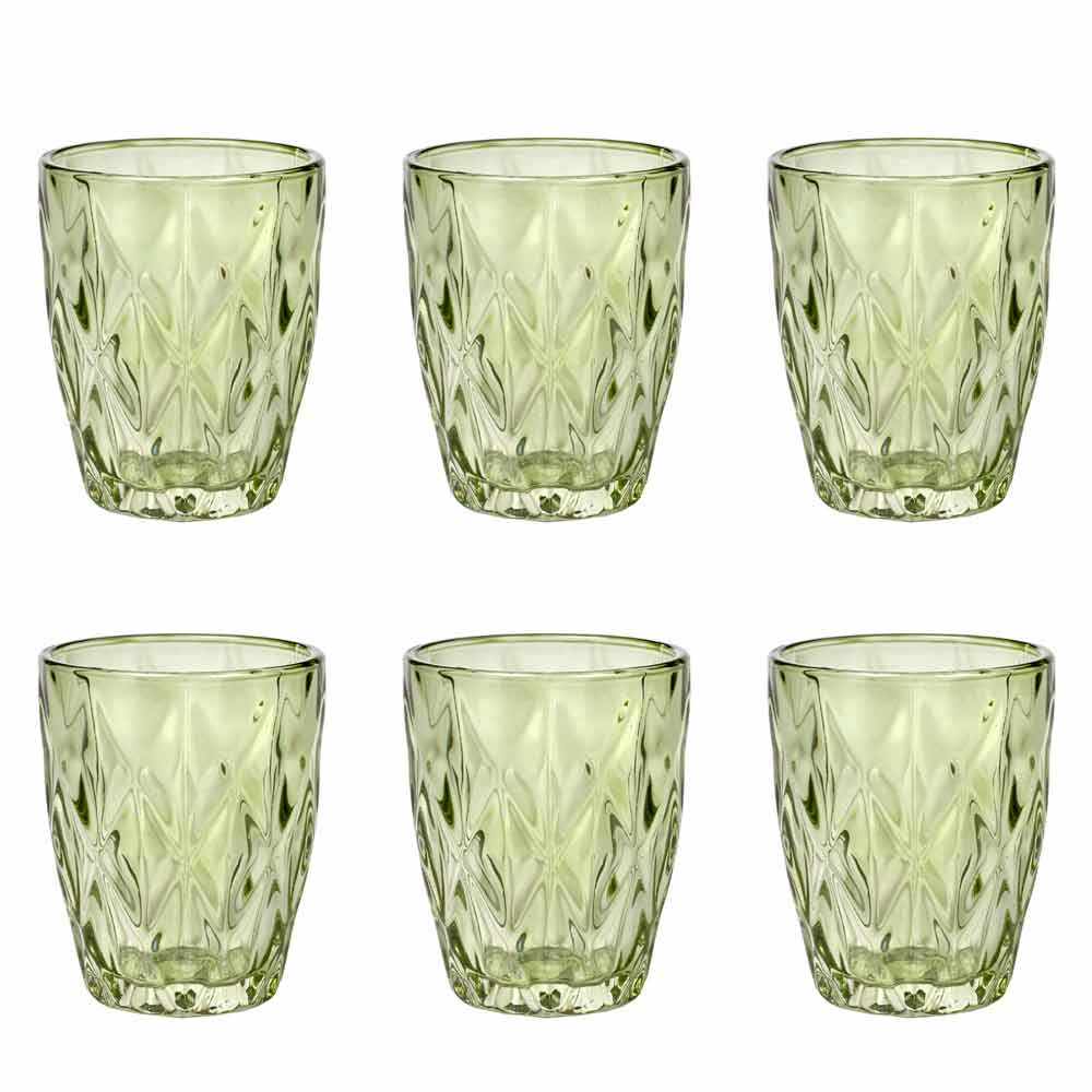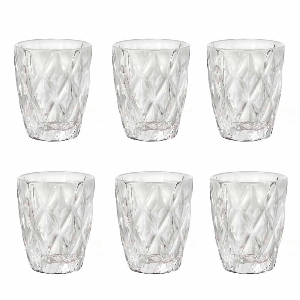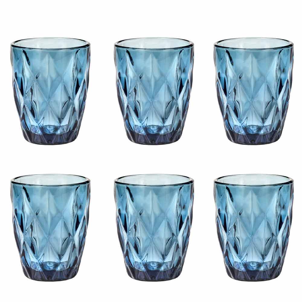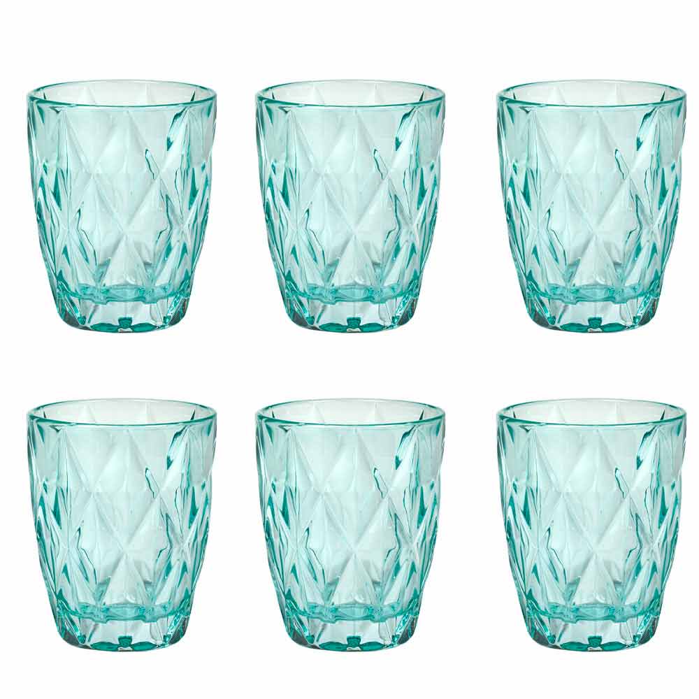 12 Vasos de agua de diseño moderno en vidrio coloreado y decorado.