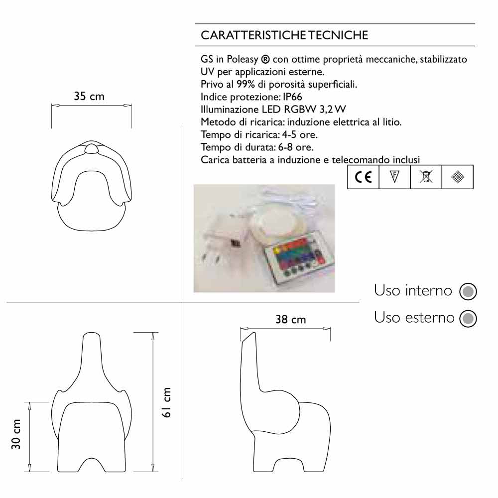 El valor simbólico y la funcionalidad se unen para crear un objeto que puede complacer a grandes y pequeños. Inspirado en el elefante, un símbolo icónico y que trae buena suerte, Tino es un asiento cómodo para los niños. Para subrayar su alegría, el kit RGB con recarga por inducción que da rienda suelta a la imaginación de pequeños y mayores, gracias a los juegos de color que se pueden controlar de forma remota con mando a distancia.