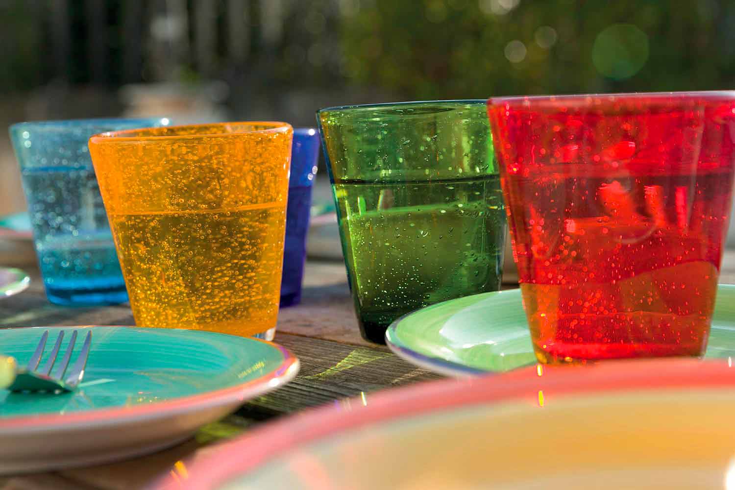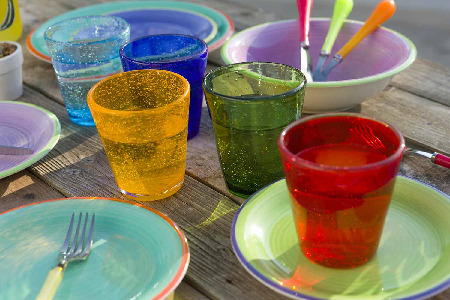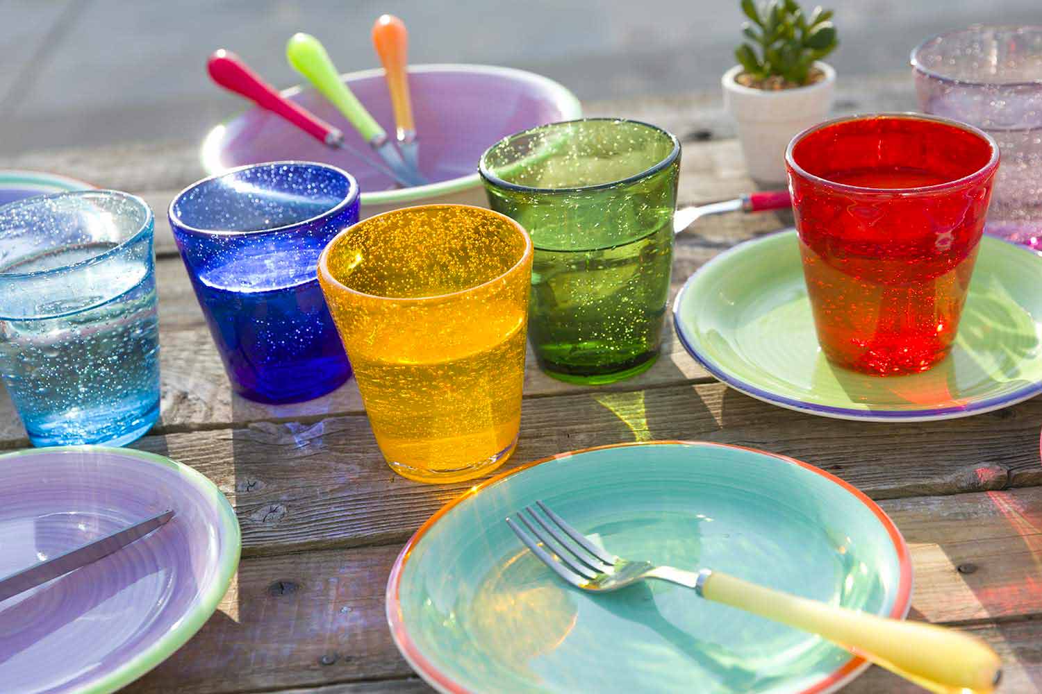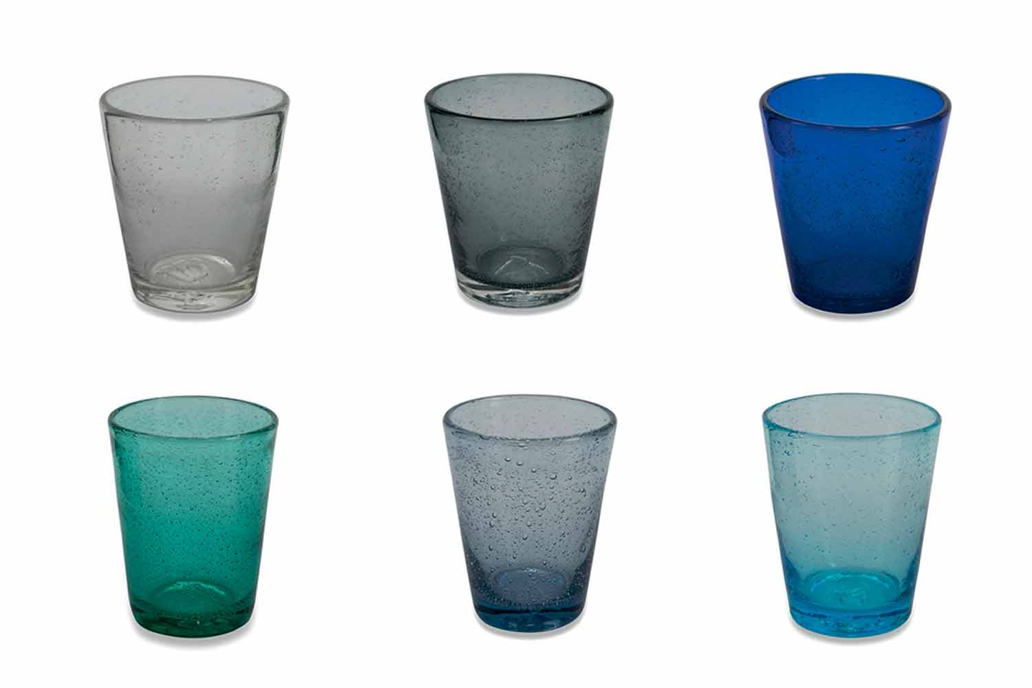 Servicio de vasos de vidrio soplado de colores 12 piezas de agua.