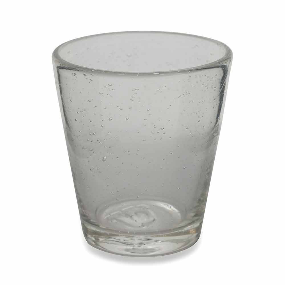 La forma espaciosa da la bienvenida a las bebidas, revelada por la transparencia del vidrio soplado.