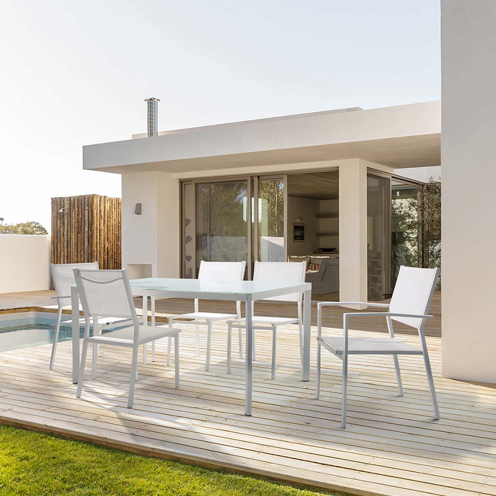 Silla apilable de aluminio y textil de jardín, diseño moderno - Franz