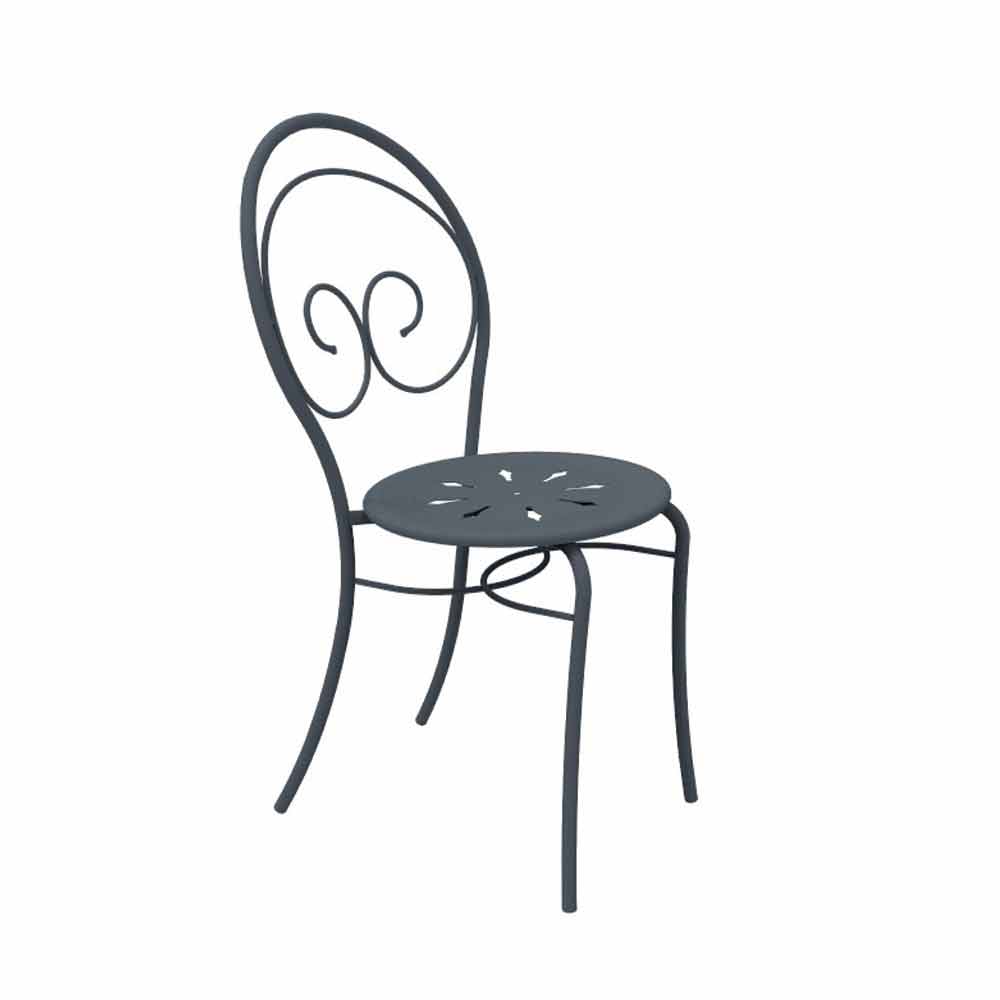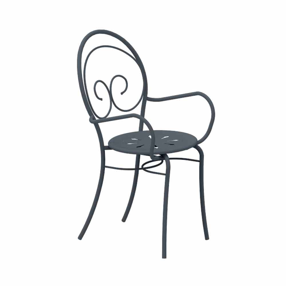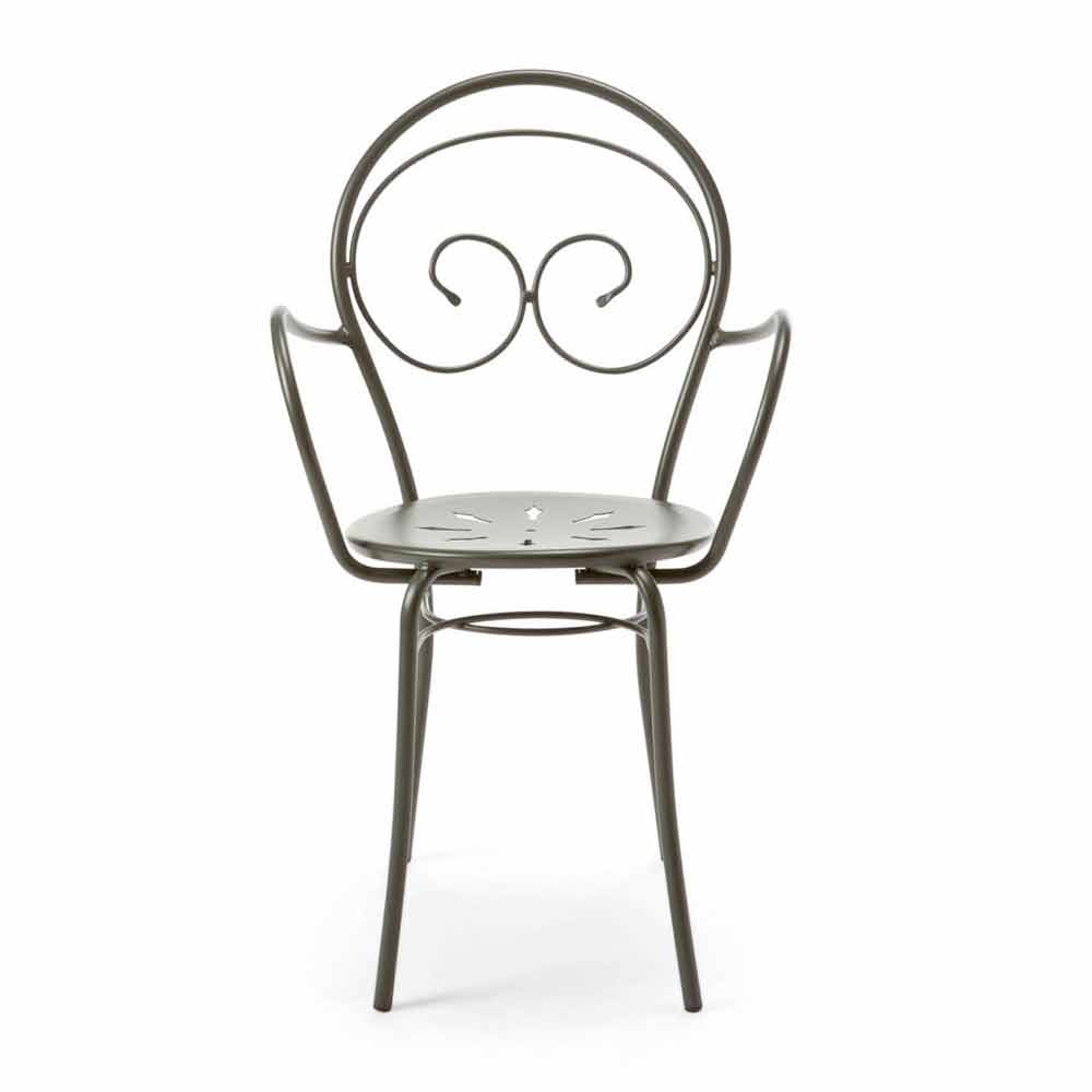 Silla de exterior apilable con o sin brazos en hierro galvanizado pintado con polvo. Fabricada en Italia, 2 piezas.