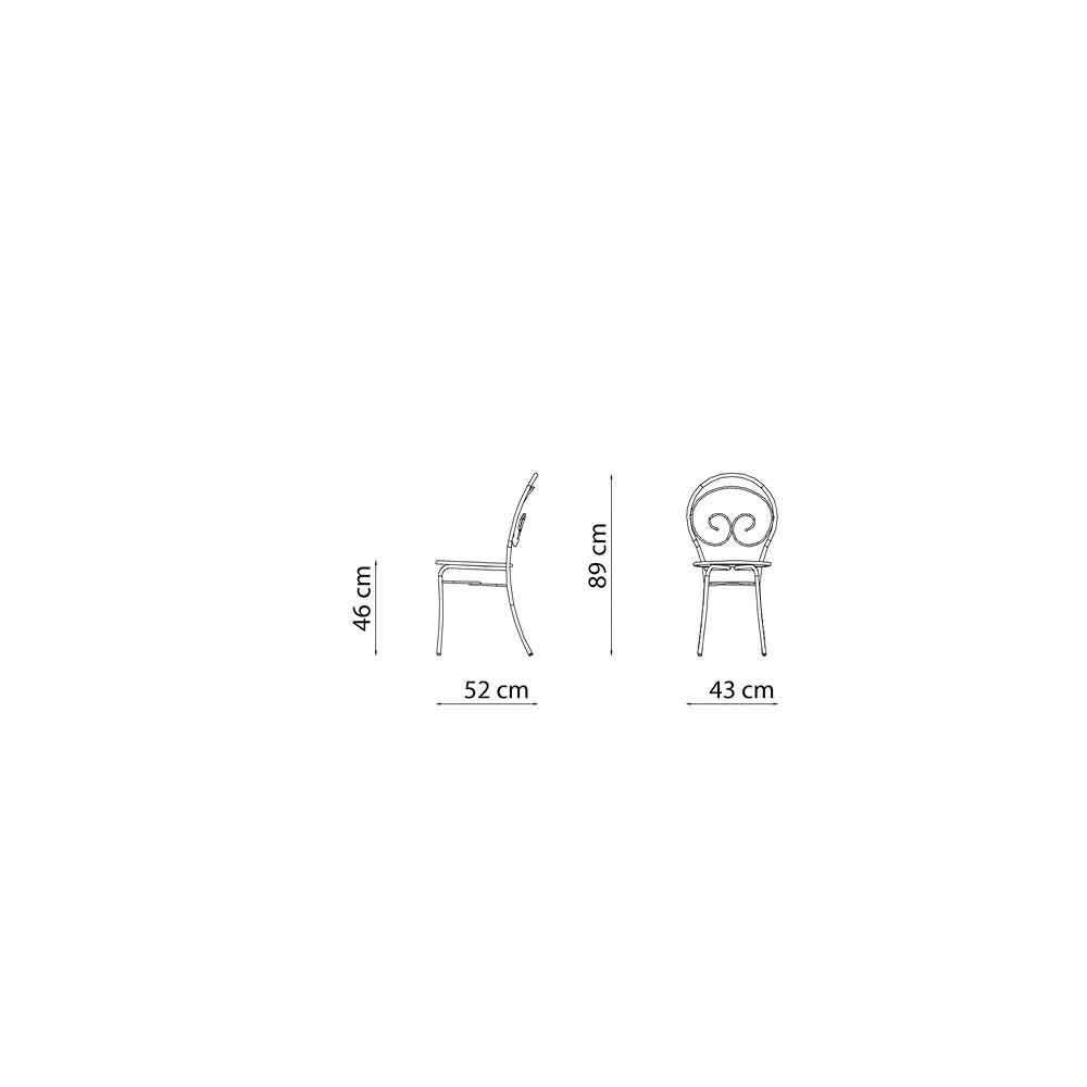 Estas sillas de exterior están fabricadas íntegramente en hierro galvanizado pintado con polvos termoendurecibles ideales para dar solidez al producto y por tanto durabilidad en el tiempo.
