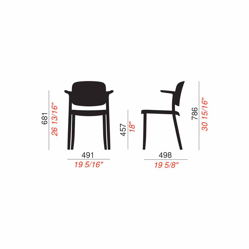 Silla apilables para exteriores de polipropileno de diseño con reposabrazos, 4 piezas, hecho en Italia.