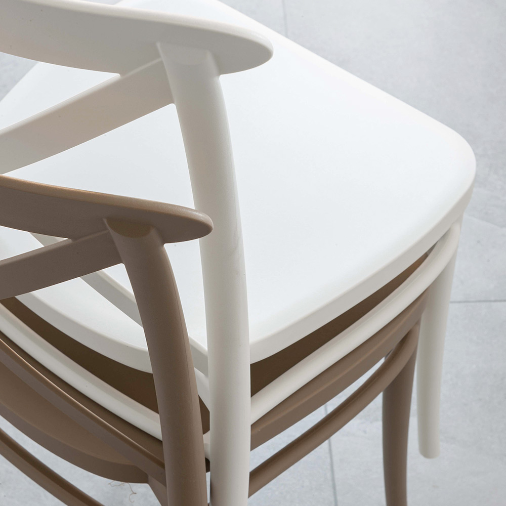 resina reforzada con fibra de vidrio. Este producto está diseñado para todos aquellos que quieran combinar funcionalidad con sencillez. De hecho, esta silla es perfecta para incluirla en zonas de estar, cocinas y comedores, tanto internos como externos, donde se viven momentos cotidianos en familia y donde la practicidad es fundamental. Gracias a los materiales utilizados para la producción, queremos garantizar al cliente un producto que no sólo sea bonito a la vista sino también de calidad y resistente en el tiempo.