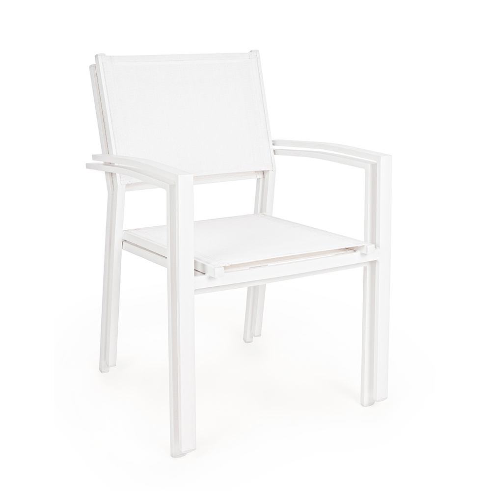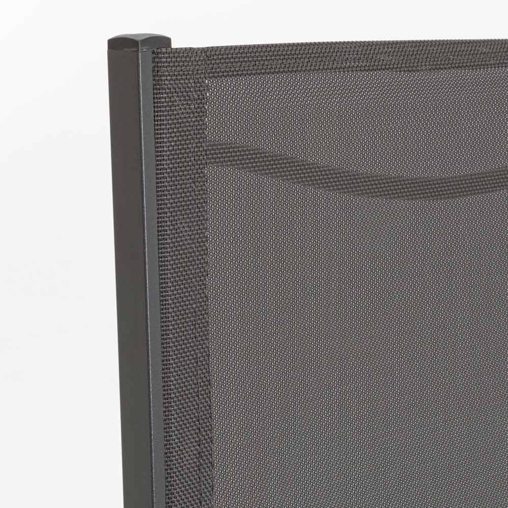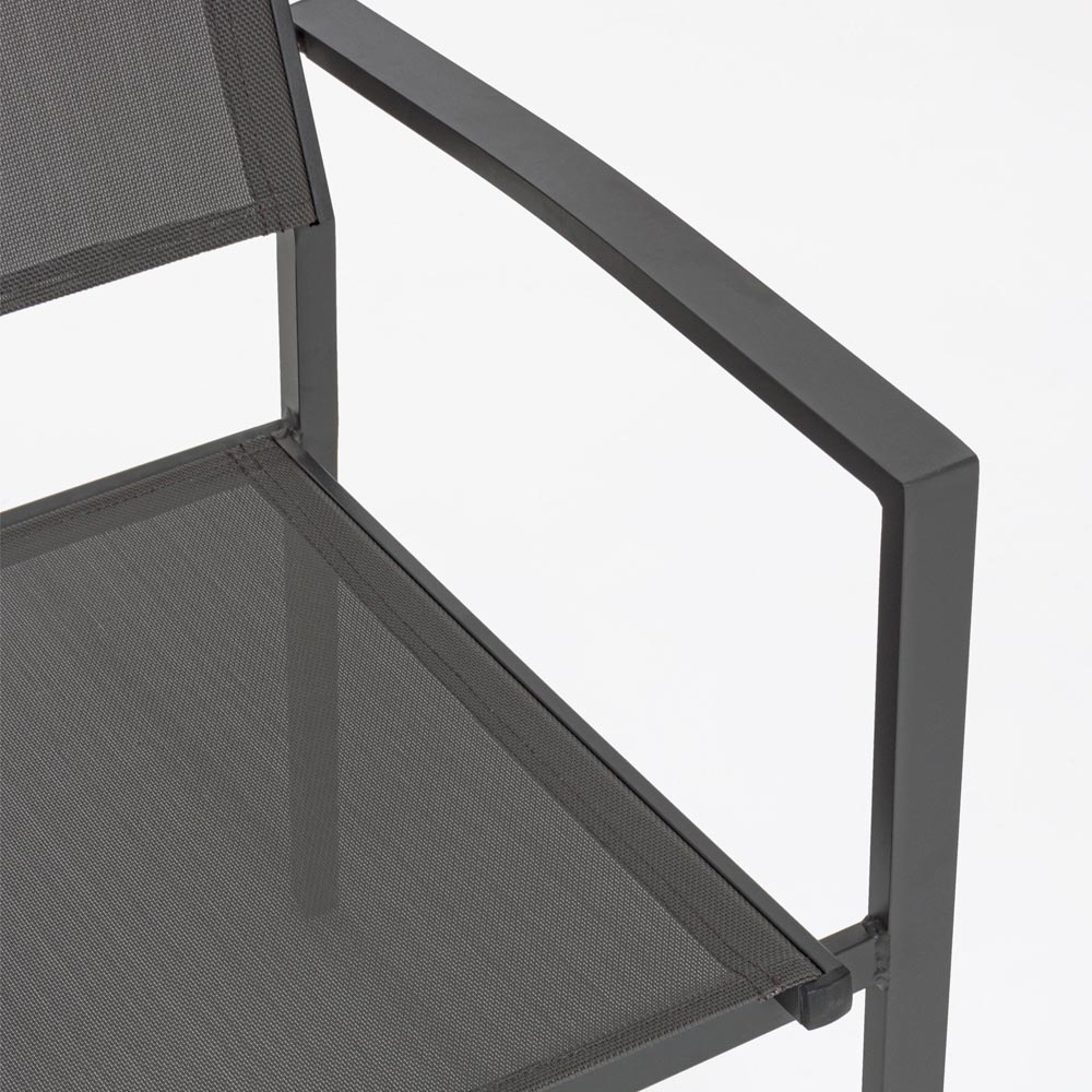 Silla apilable de exterior en aluminio y textilene, diseño moderno.