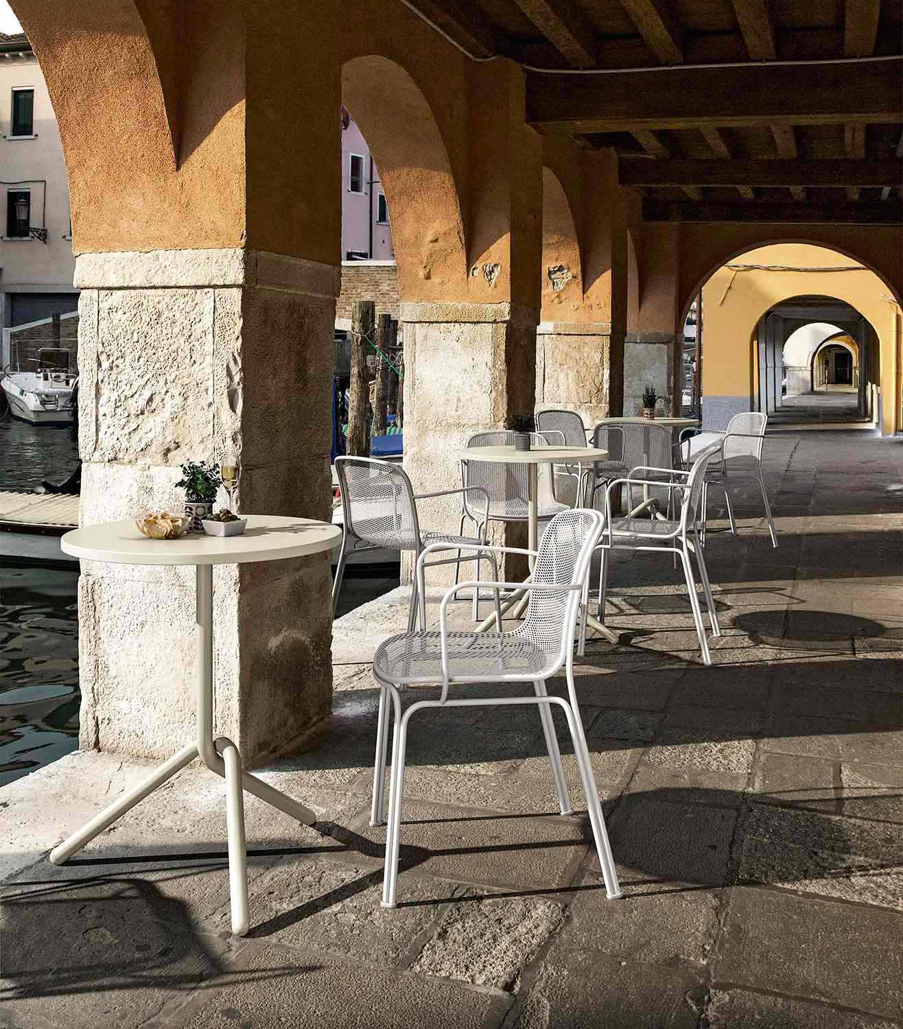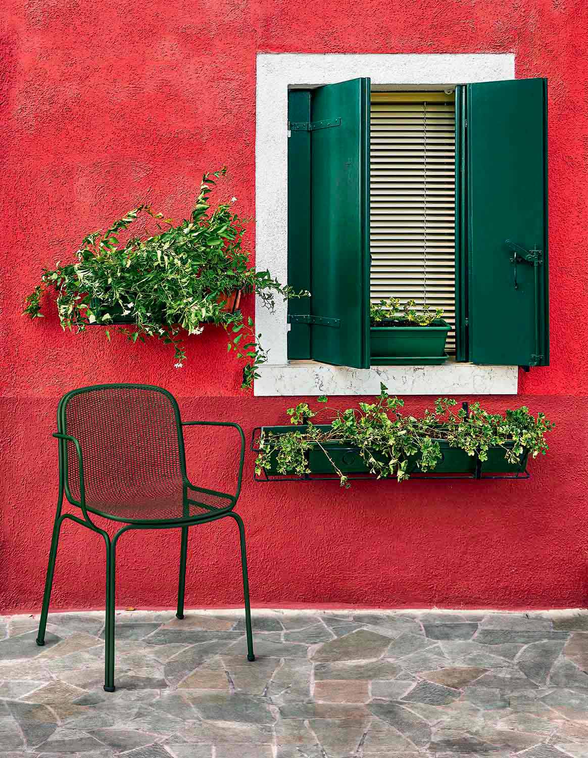 Verna es una maravillosa silla de exterior completamente hecha de metal y malla de alambre que combina perfectamente las líneas tradicionales con un diseño contemporáneo que hace que la silla sea sólida y cómoda gracias a la presencia de los reposabrazos. También es extremadamente fácil de manejar gracias al cuerpo ligeramente elevado en comparación con las piernas. Disponible en 5 variaciones de color que le permiten dar personalidad a cualquier entorno, Verna es una silla apilable hasta un máximo de 6 unidades, lo que le permite optimizar espacios en el mejor de los casos.