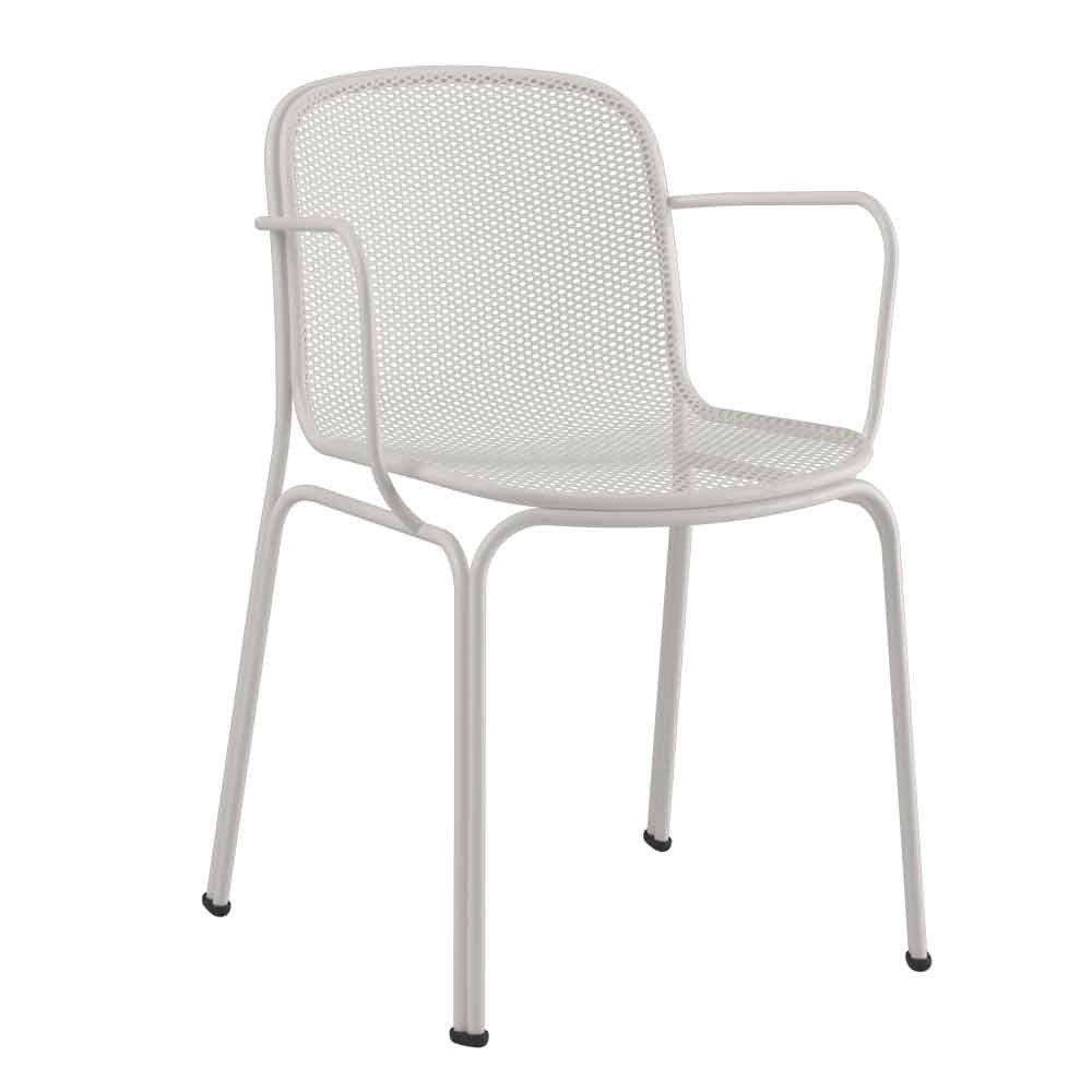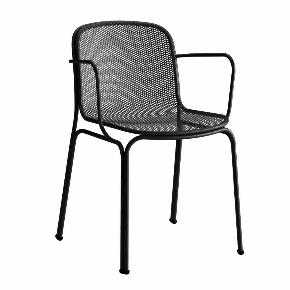 Silla apilable de metal revestido para exteriores con reposabrazos, Hecho en Italia, 4 piezas.