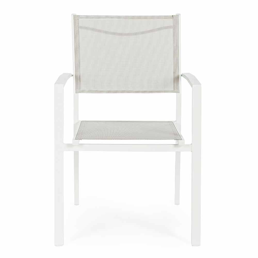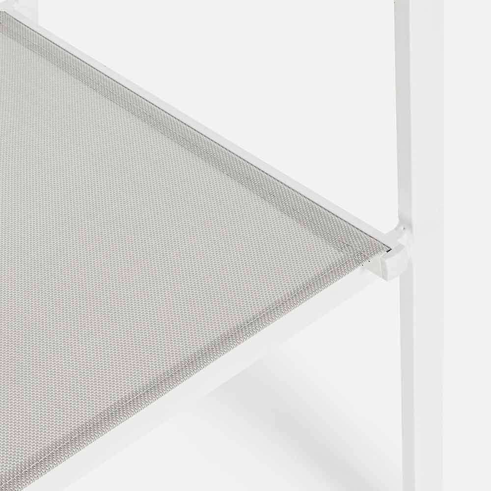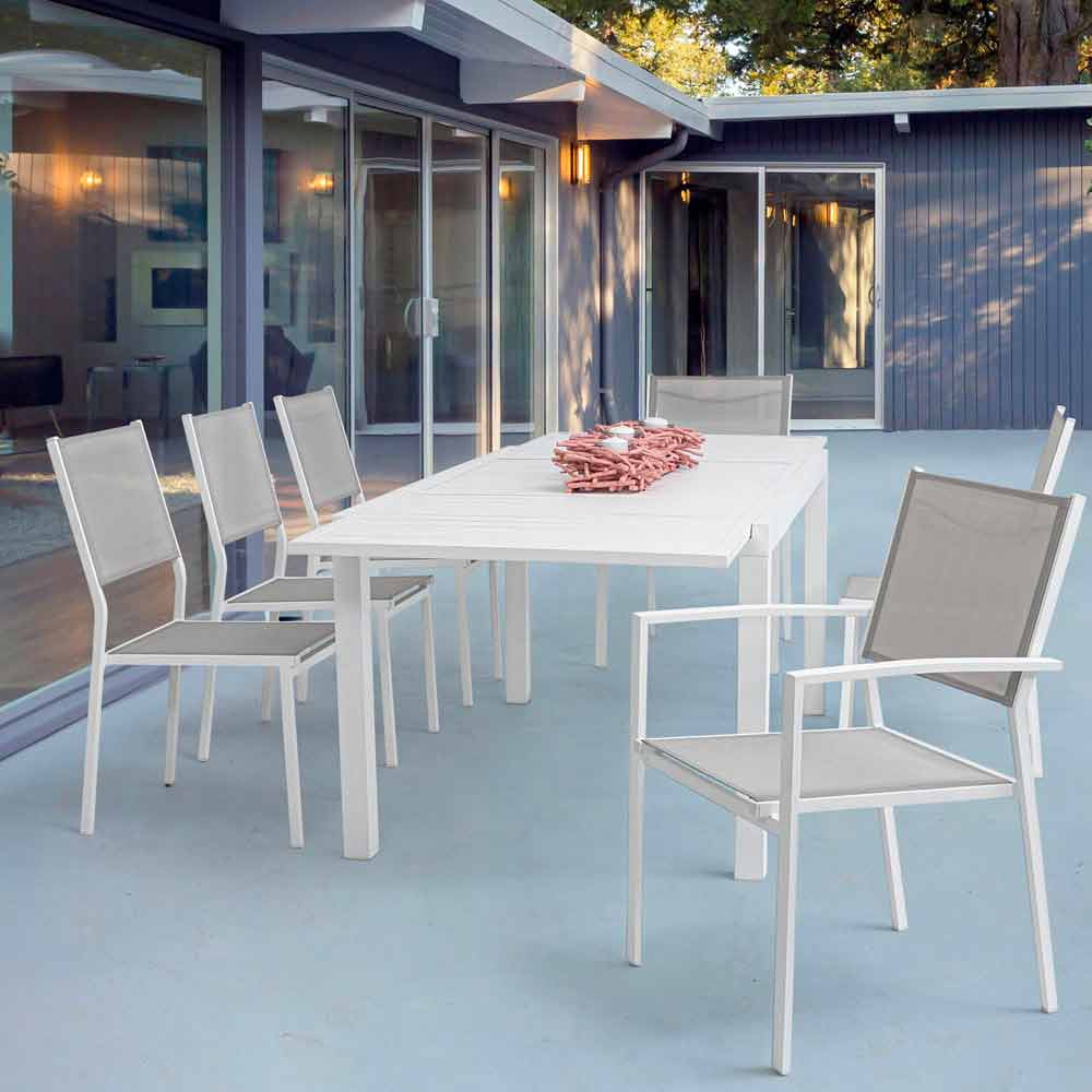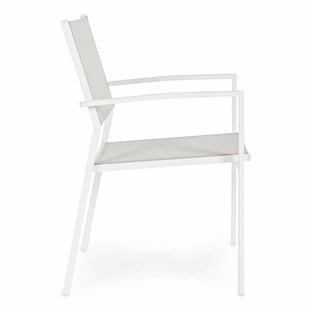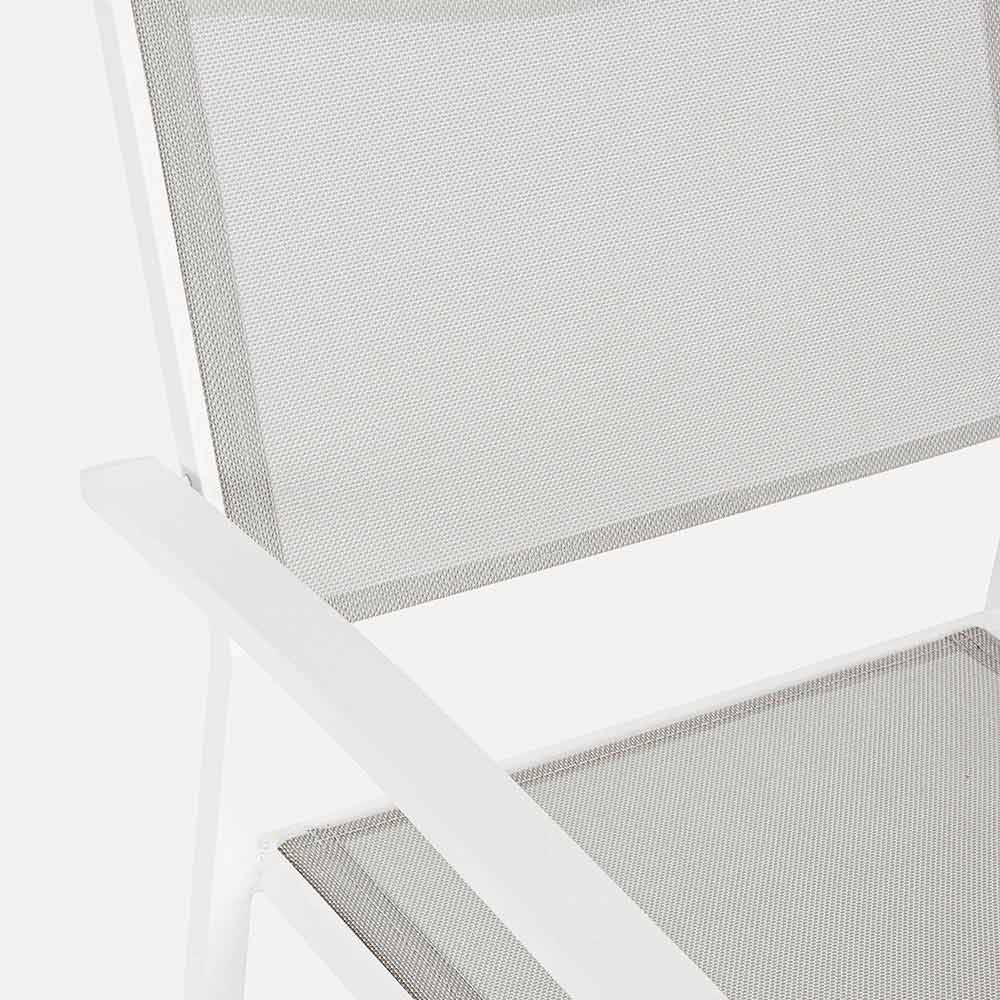 Estructura de aluminio , con recubrimiento de polvo (poliéster), asiento y respaldo en textilene 2x1. Apilable .