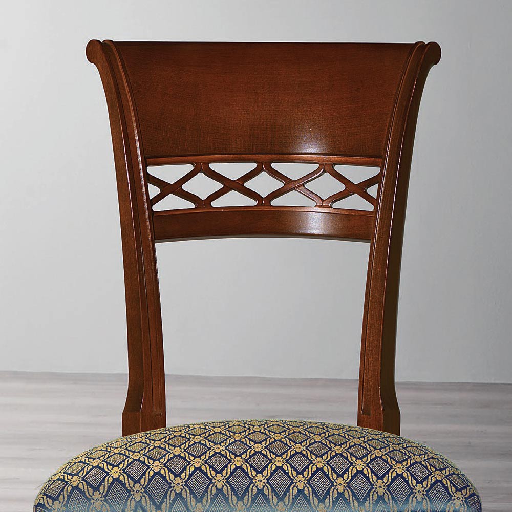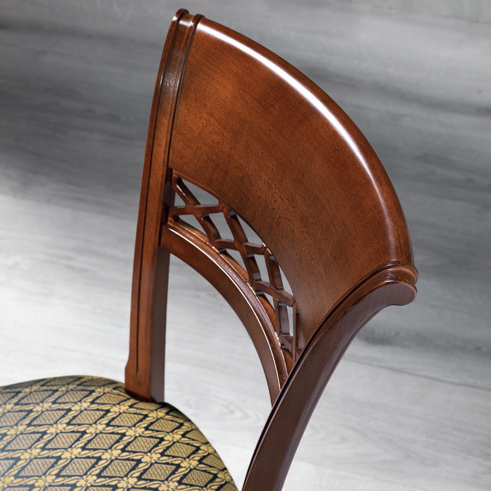 Silla de salón en madera y tejido de diseño clásico fabricado en Italia.