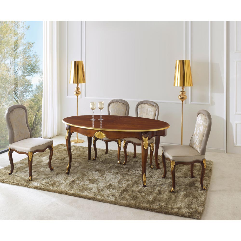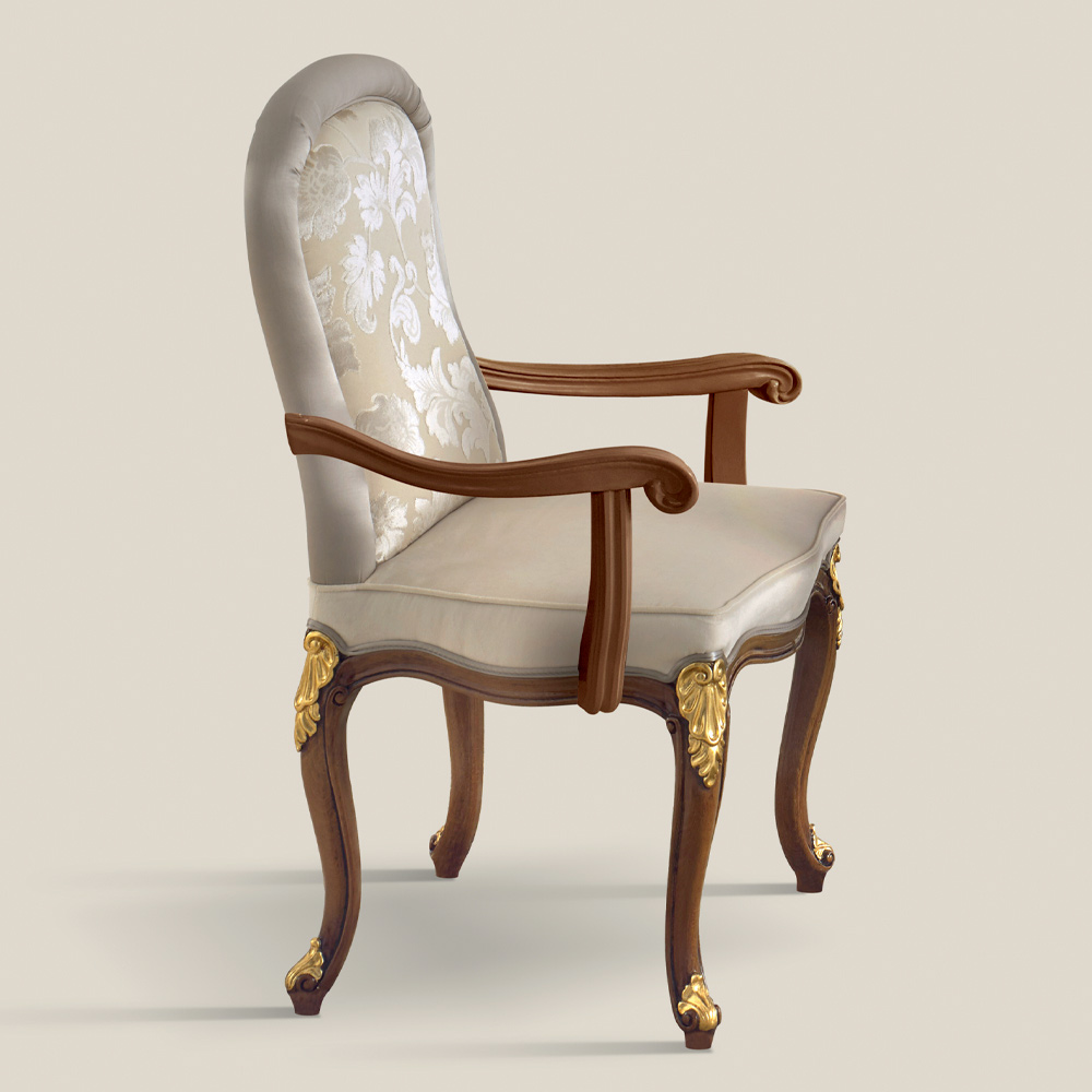 Silla clásica en madera de nogal y tapizada en tela Made in Italy.