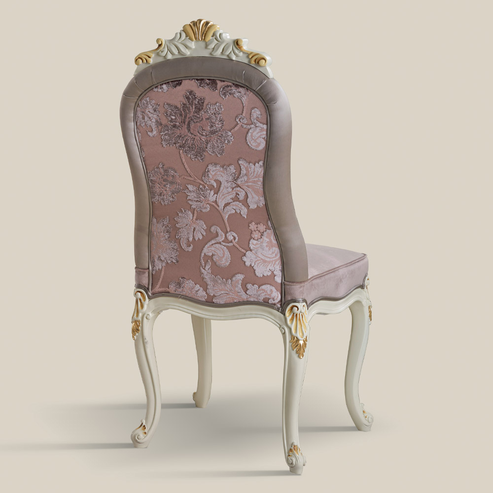 Silla clásica en madera blanca y tapizada en tela Made in Italy.