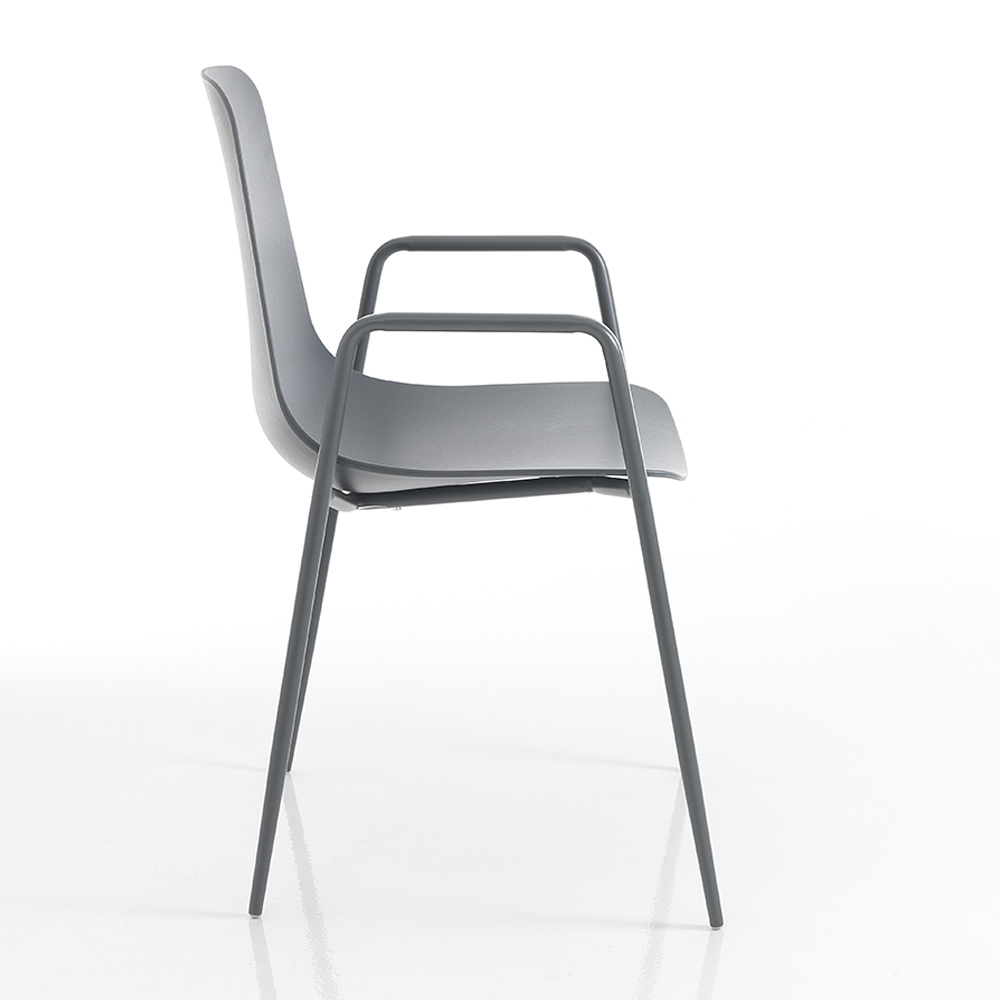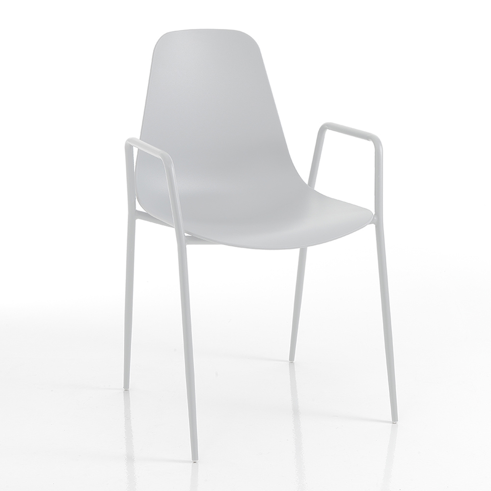 Silla de cocina en polipropileno mate con patas de acero, 4 piezas.