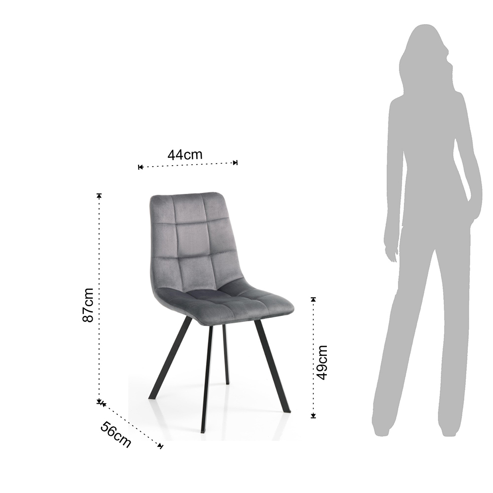 Silla de comedor o cocina en metal y microfibra efecto terciopelo, 4 piezas.