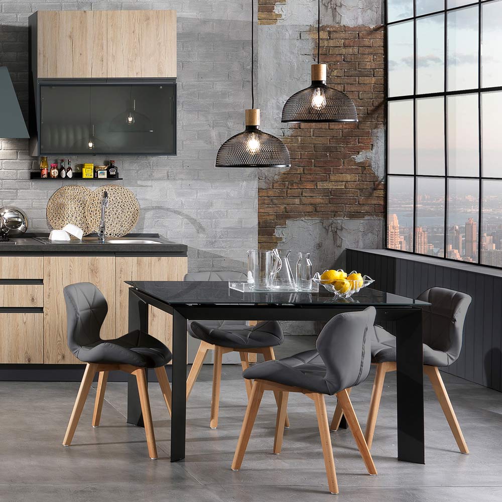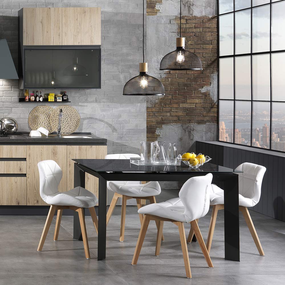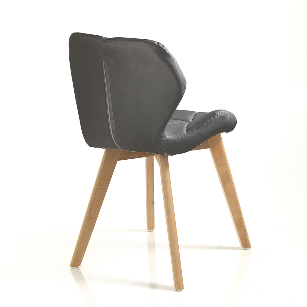 Silla de comedor moderna en madera tapizada en cuero sintético de 2 piezas.