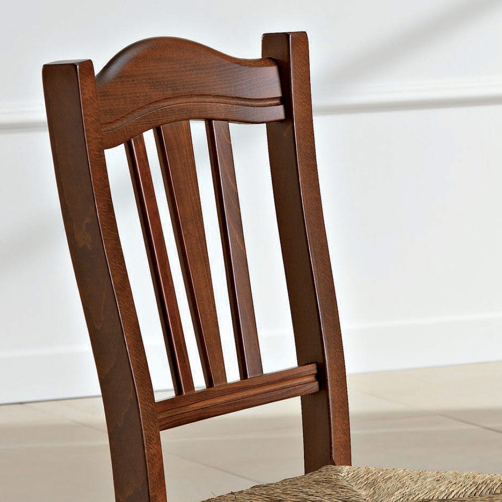 Silla de cocina clásica de paja y madera fabricada en Italia.
