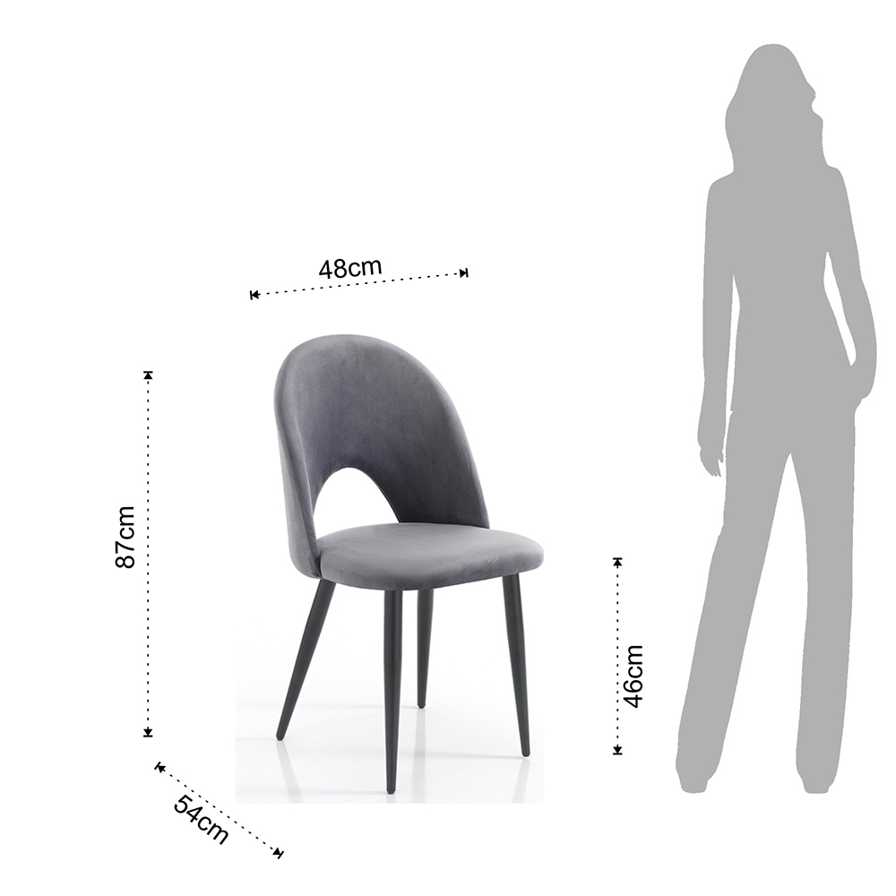 Silla de cocina en tejido efecto terciopelo y metal pintado, 4 piezas.