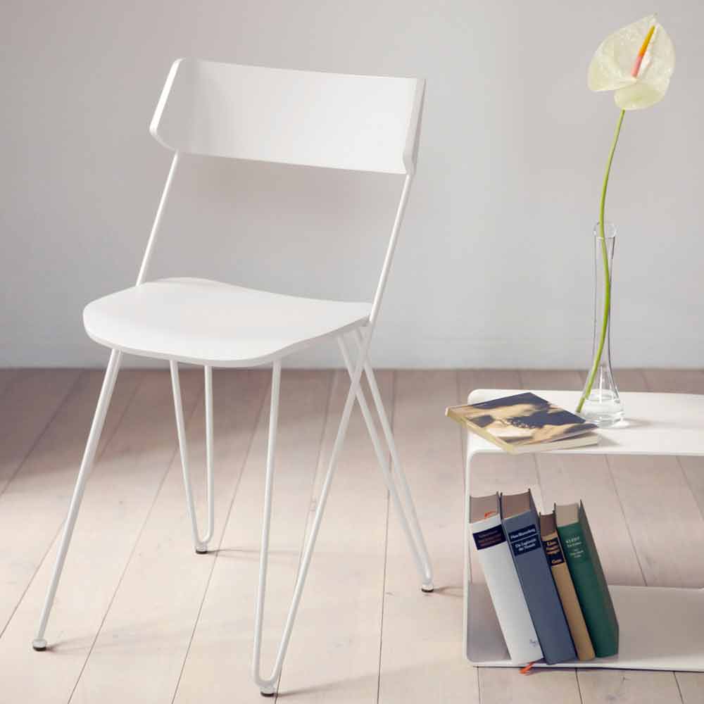 Una idea innovadora aunque en su sencillez. Lo que caracteriza la estética es la particularidad de las patas tubulares que crean la sensación de un empujón hacia arriba apoyando suavemente el asiento y creando la ilusión de un respaldo que parece flotar. La esbelta estructura y la esencialidad de las formas la convierten en una silla extremadamente versátil, capaz de enriquecer el mobiliario de sus espacios de forma sobria y discreta, creando al mismo tiempo una perfecta armonía de estilos y un ambiente cálido y acogedor.