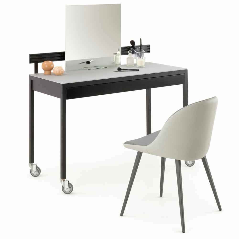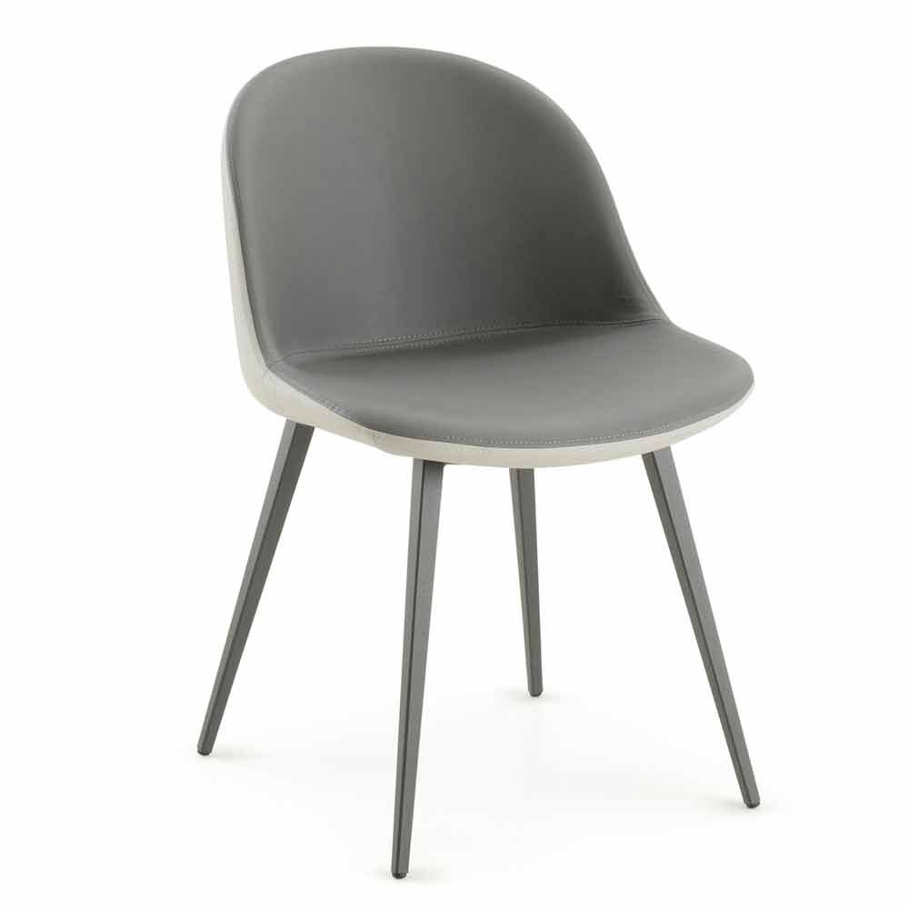 Silla elegante para cenar habitación o la cocina fabricado en Italia con la cáscara cubierto de plata y antracita eco-piel y la estructura de grafito en metal pintado.