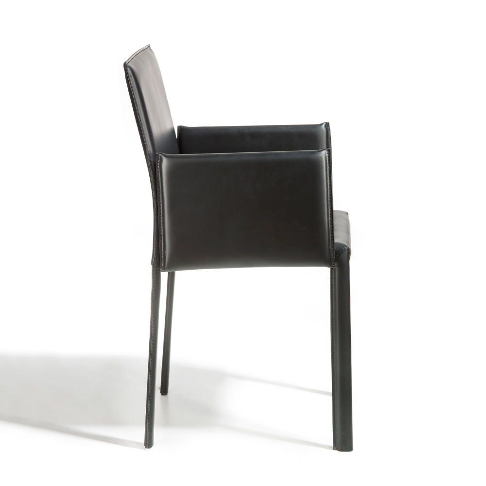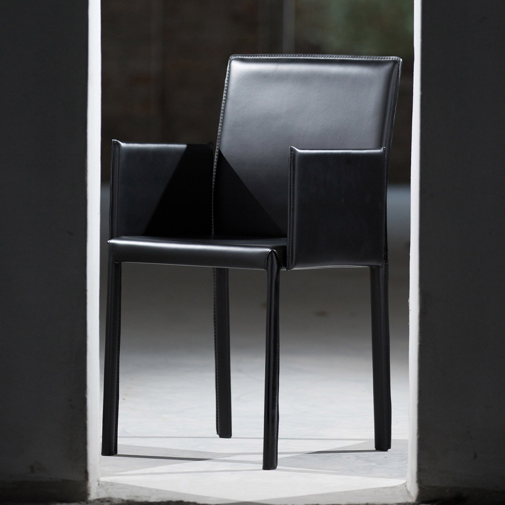 Silla de comedor con reposabrazos de cuero Made in Italy