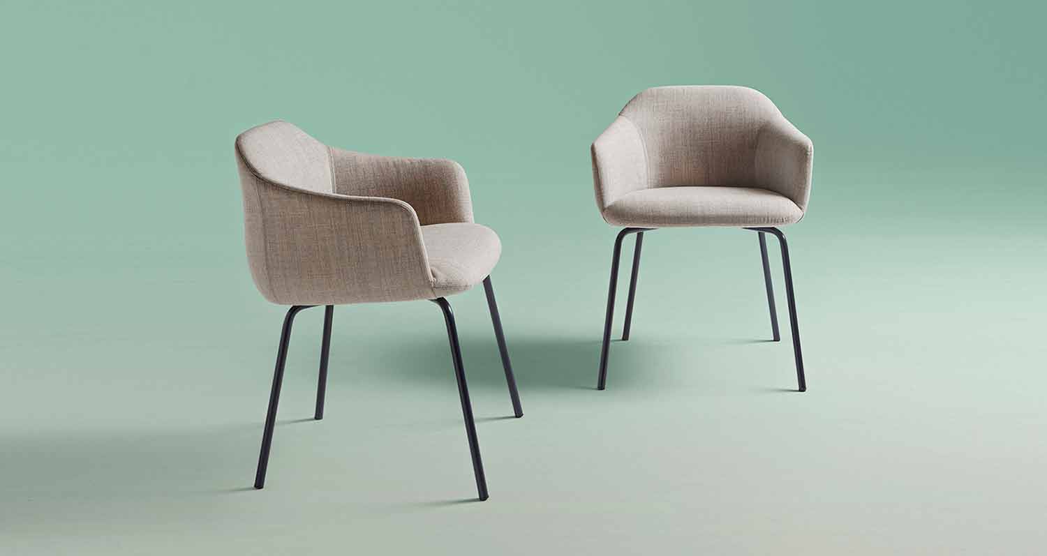 líneas continuas y sinuosas del respaldo y el asiento, ambos acolchados con espuma de poliuretano y apoyados sobre una fina plancha. estructura.