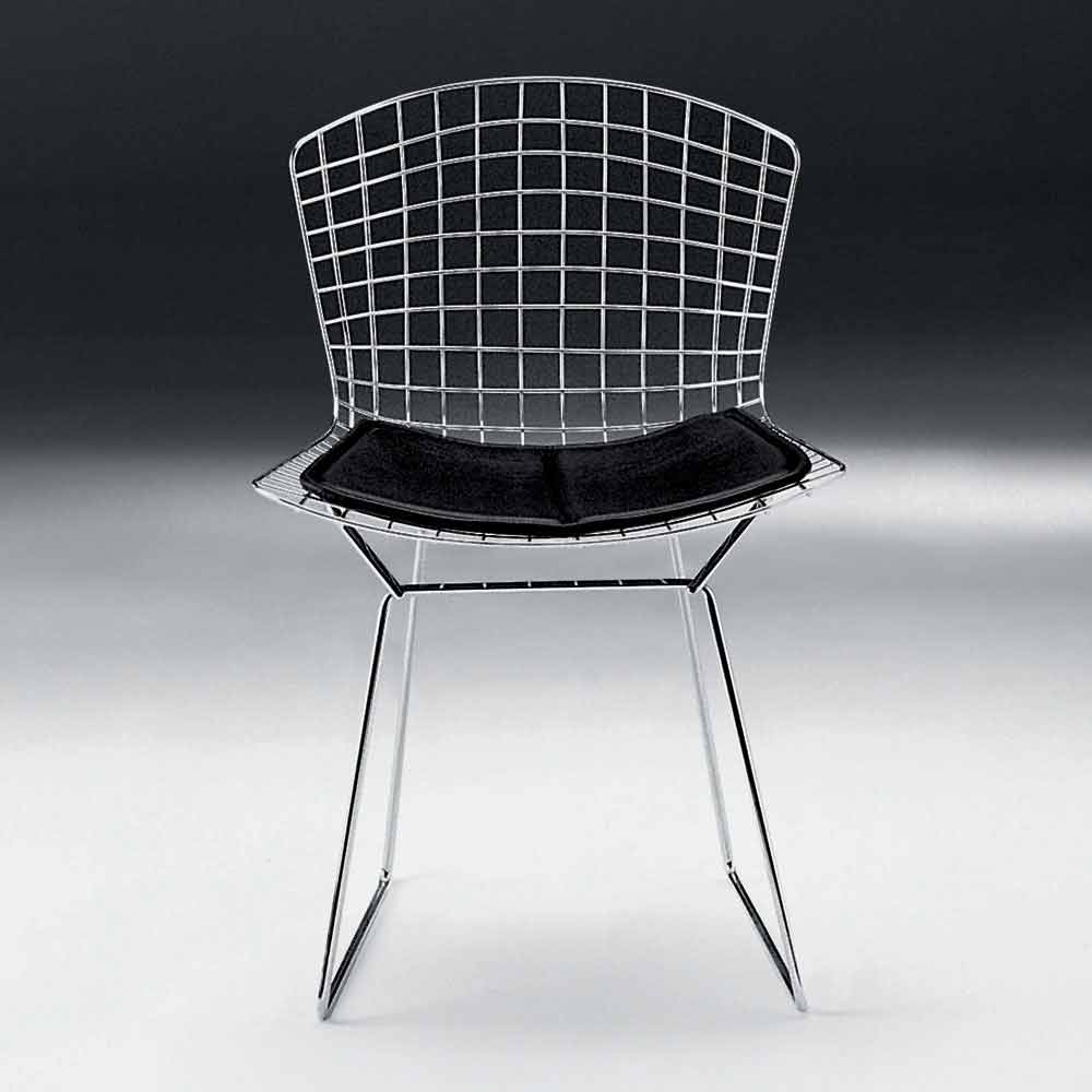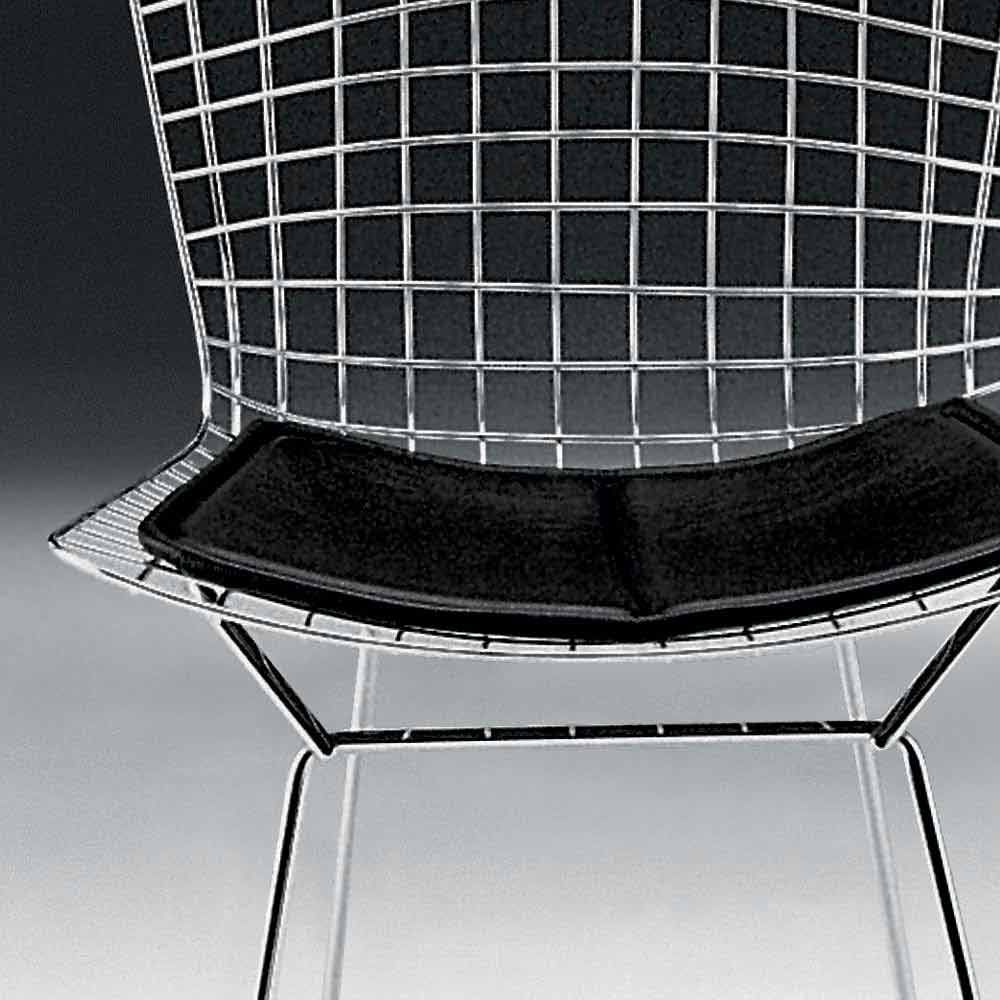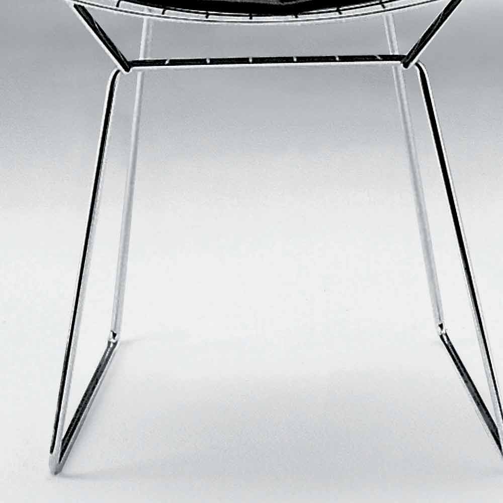 estructura de acero cromado y asiento acolchado tapizado en cuero.