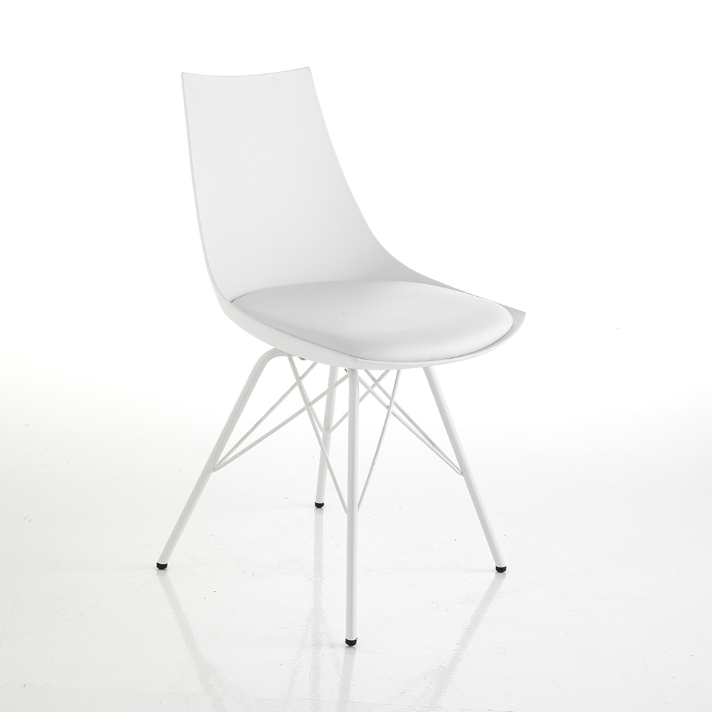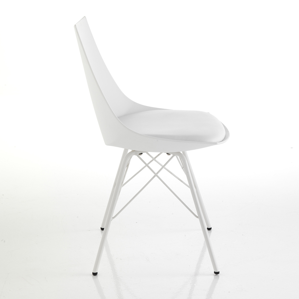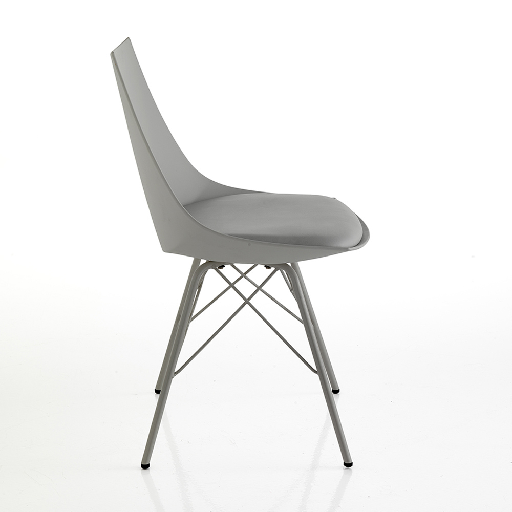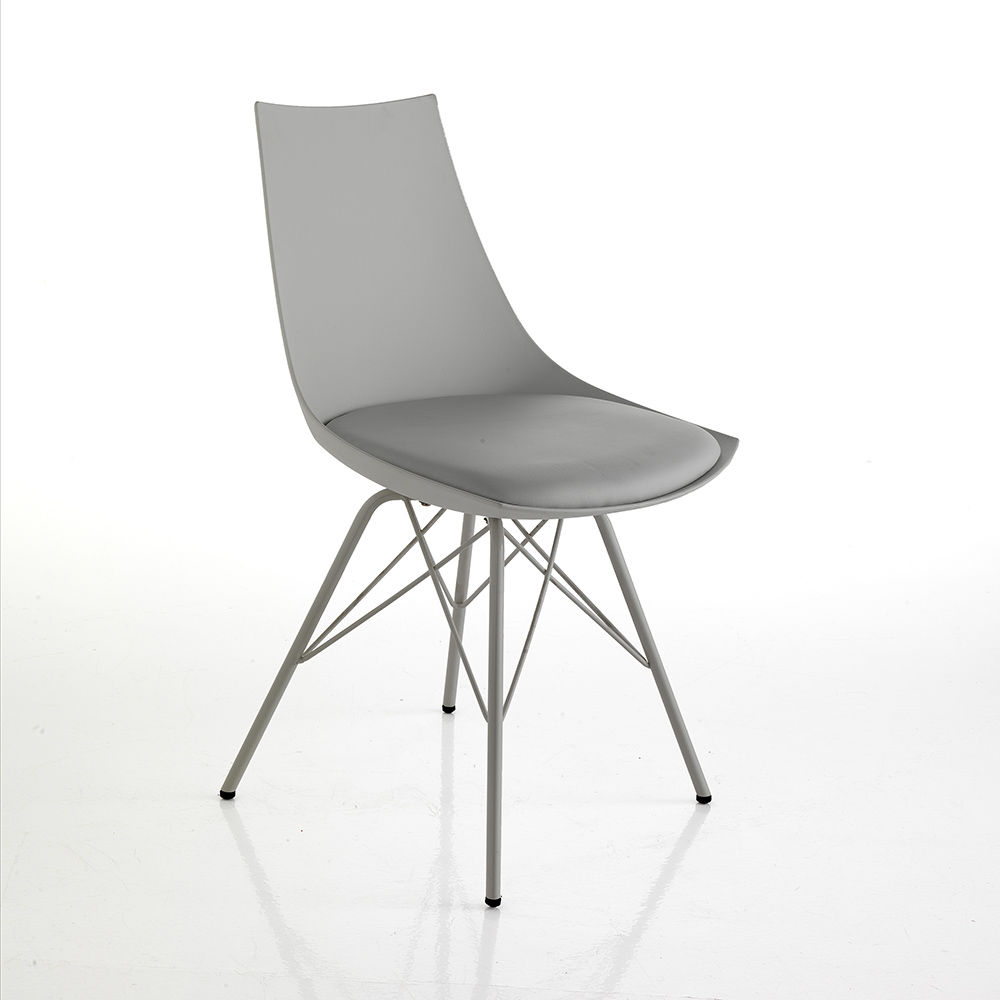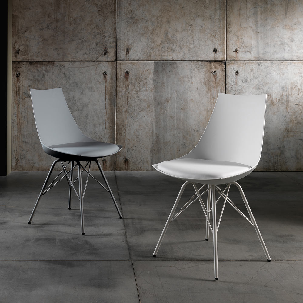 Silla para comedor o cocina con estructura realizada en metal pintado brillo , carcasa en polipropileno opaco y asiento acolchado tapizado en piel sintética . Un complemento con un diseño innovador y refinado, ideal para situaciones de decoración modernas que requieren un toque de personalidad .