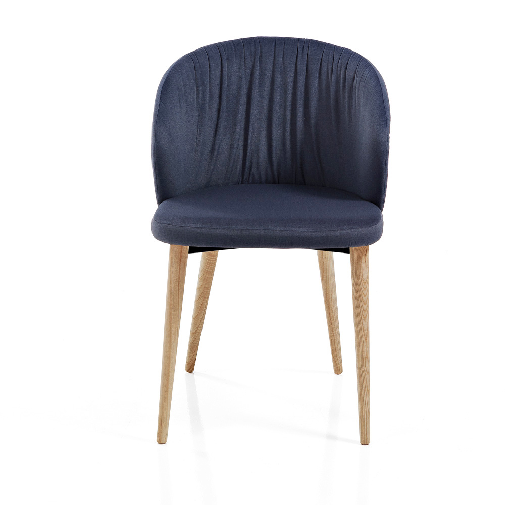 Silla Tub tapizada en tela de colores y patas cónicas de fresno de diseño moderno fabricada en Italia.