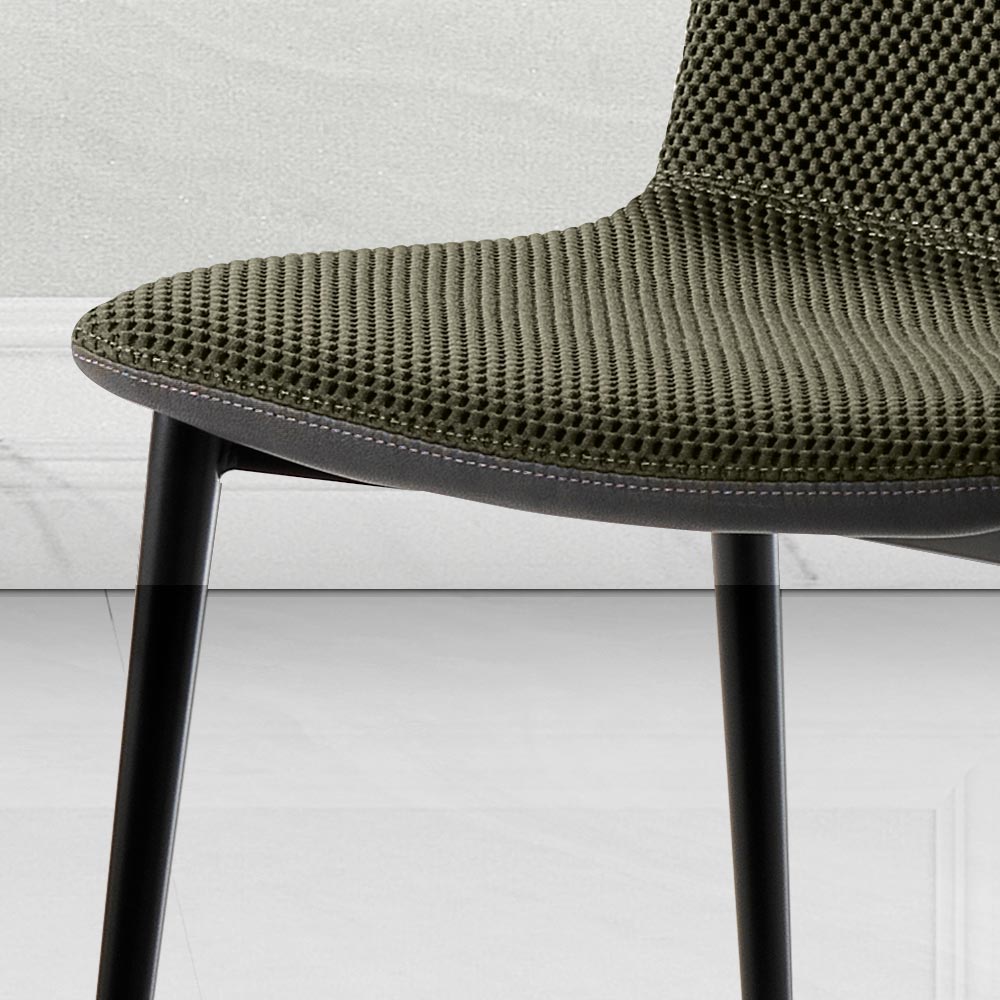 Las finas pero robustas patas de metal expresan fuerza y modernidad, creando un equilibrio perfecto entre ligereza visual y estabilidad estructural. La elección de los materiales y el diseño cuidadosamente pensado garantizan comodidad y durabilidad , haciendo de esta silla un complemento ideal tanto para el hogar como para el entorno profesional.