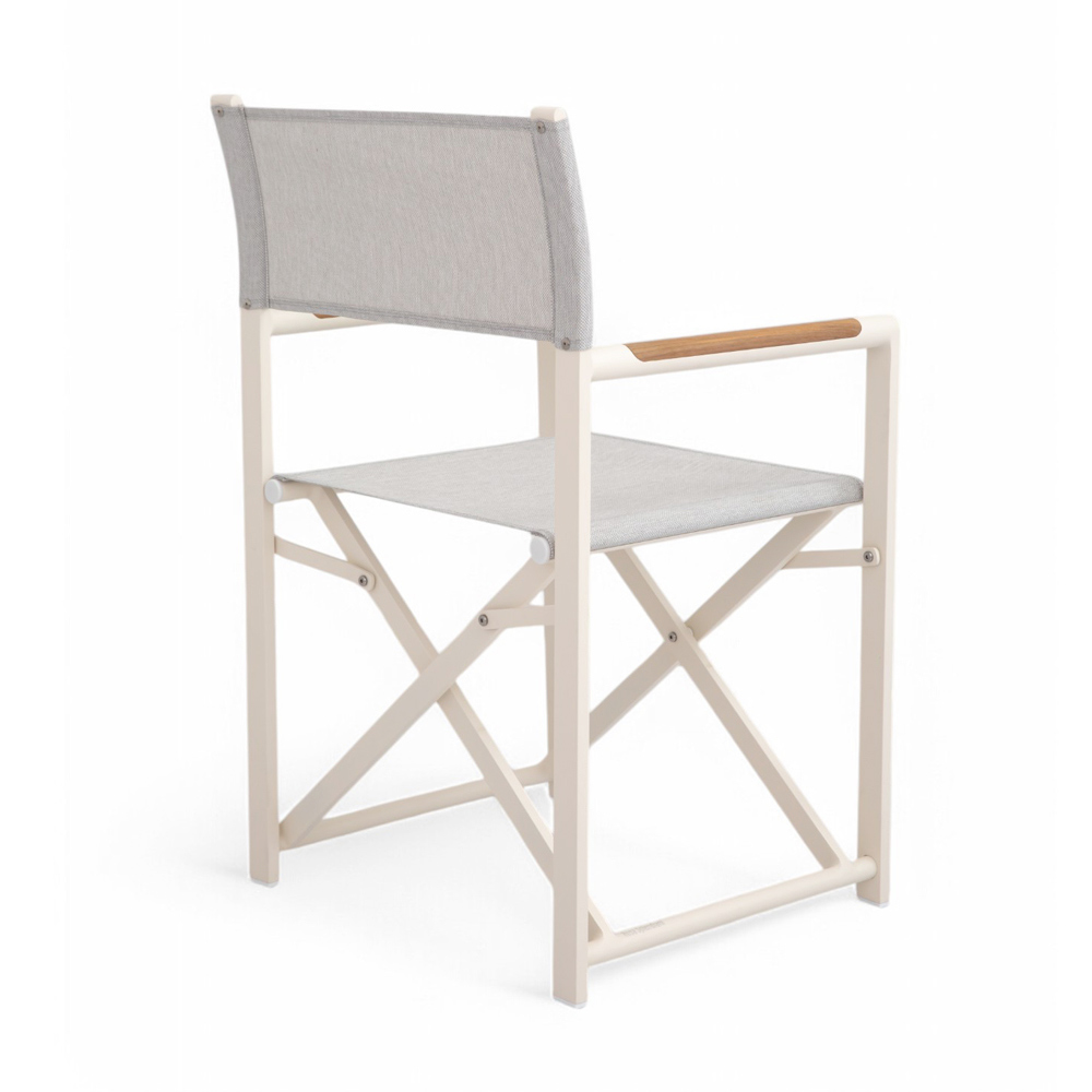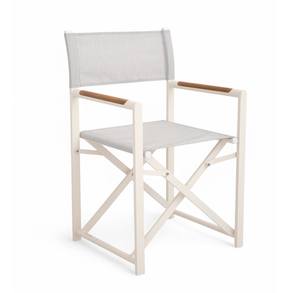El asiento y el respaldo de textileno garantizan la máxima comodidad incluso en los días más calurosos, mientras que los detalles de madera natural en los reposabrazos añaden un toque de refinamiento. El diseño plegable hace que esta silla sea extremadamente práctica y versátil , perfecta para cenas en el jardín o momentos de relax en la terraza.
