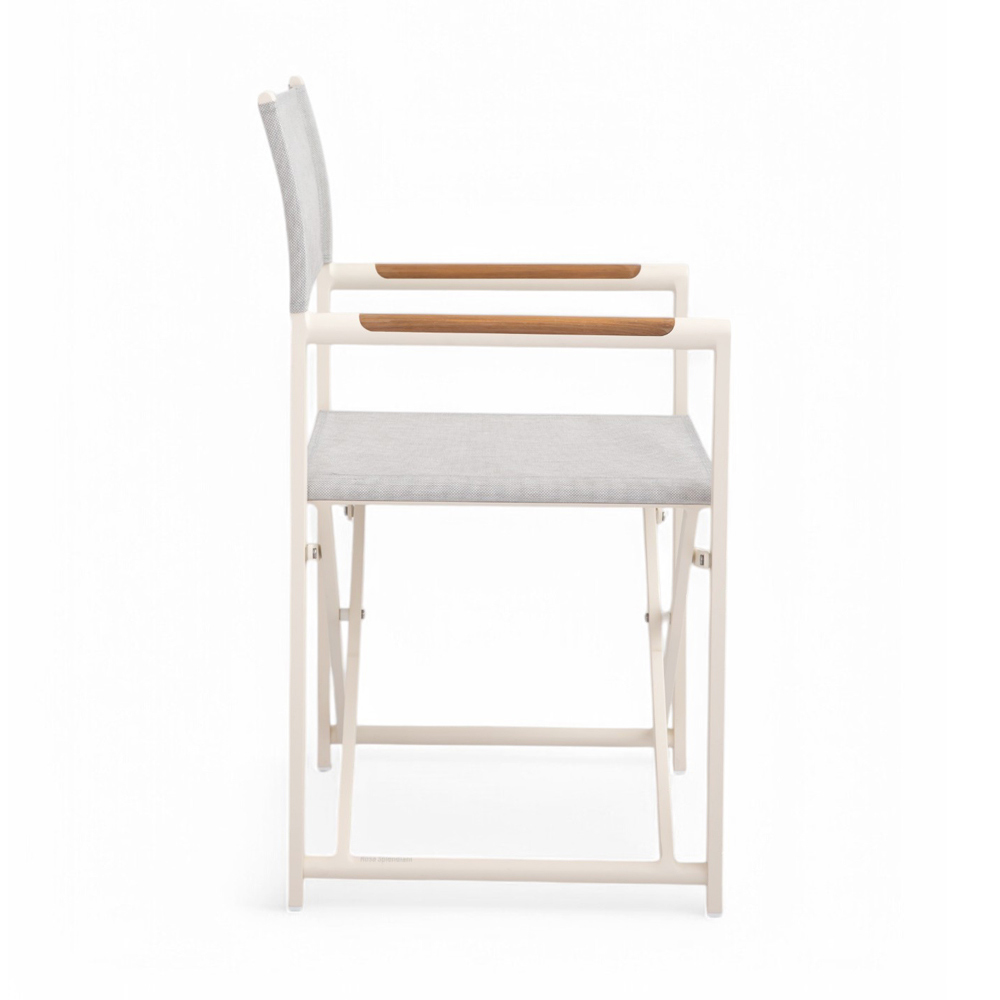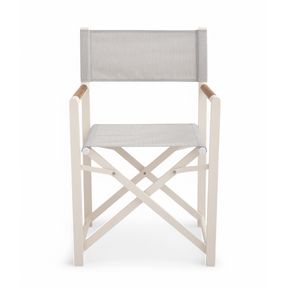 Aporta un toque de elegancia y practicidad a tu espacio exterior con esta silla de director de exterior . Fabricada a partir de una robusta estructura de aluminio con recubrimiento de polvo, esta silla está diseñada para soportar los elementos sin comprometer el estilo.