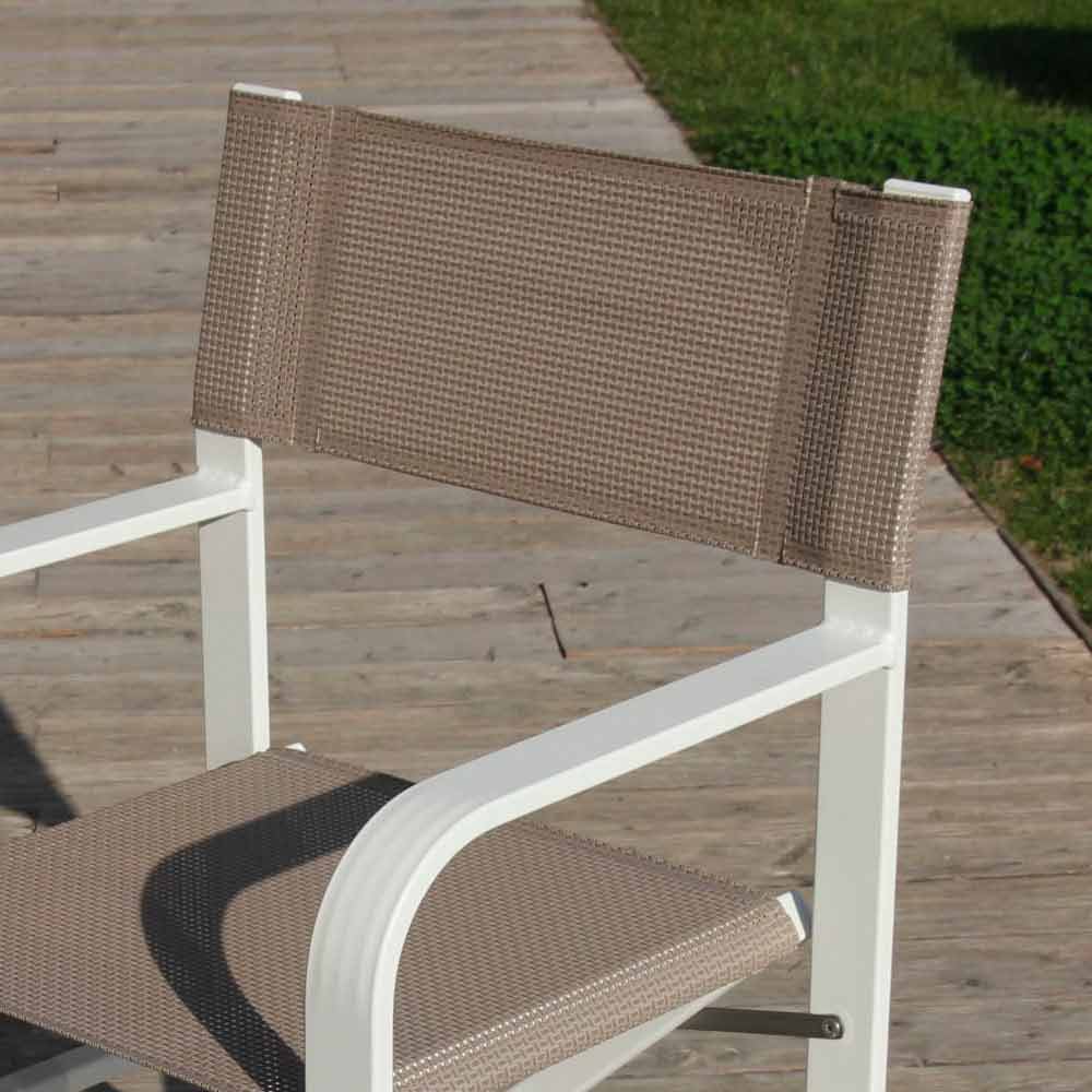 Silla de exterior con estructura en aluminio pintado en polvo y asiento en hilo continuo de poliéster recubierto de pvc, made in Italy . Una solución de mobiliario para ambientes exteriores ideal para los amantes de la practicidad y la funcionalidad, elementos que le confieren el asiento cómodo y acogedor y la estructura abatible que permite cerrar fácilmente la silla por un tamaño mínimo . Gracias a su diseño moderno y esencial se adapta perfectamente a los más variados contextos, trayendo consigo toda su personalidad sobria y ecléctica . Los diversos acabados disponibles también le confieren un carácter especialmente versátil, consiguiendo satisfacer de la mejor forma posible cualquier petición y necesidad. Los materiales de alta calidad utilizados junto con la mano de obra 100% Made in Italy dan vida a un asiento ligero y extremadamente robusto, ideal para muebles de exterior de bares, jardines, pero también playas y piscinas.