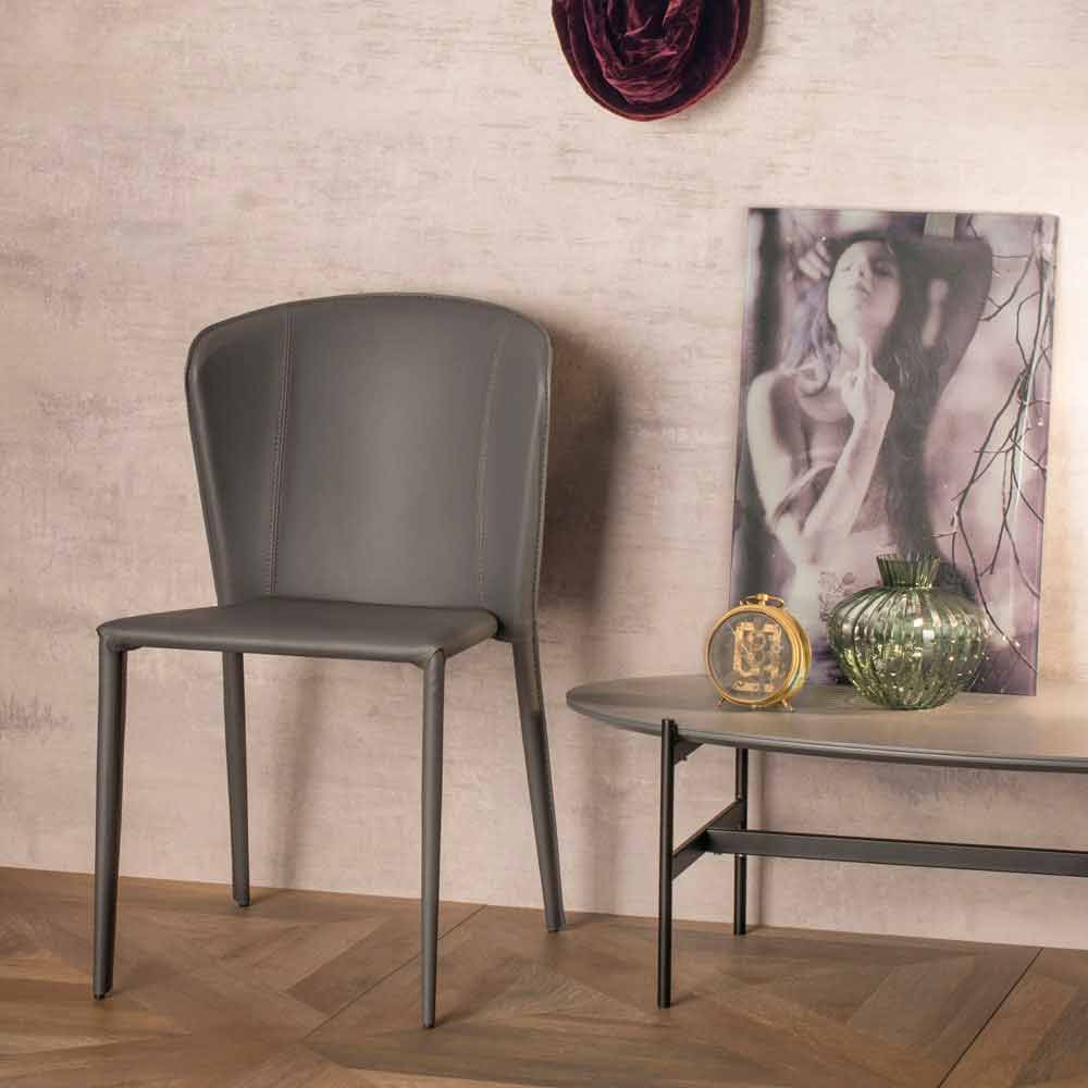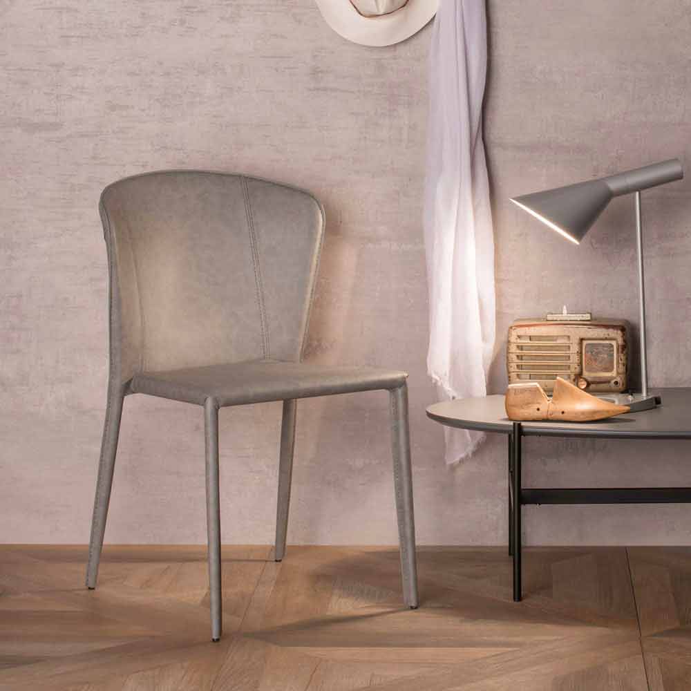 Tiene una estructura metálica completamente revestida en símil piel en una variedad de colores: gris tórtola, gris, gris oscuro, cuero y blanco.