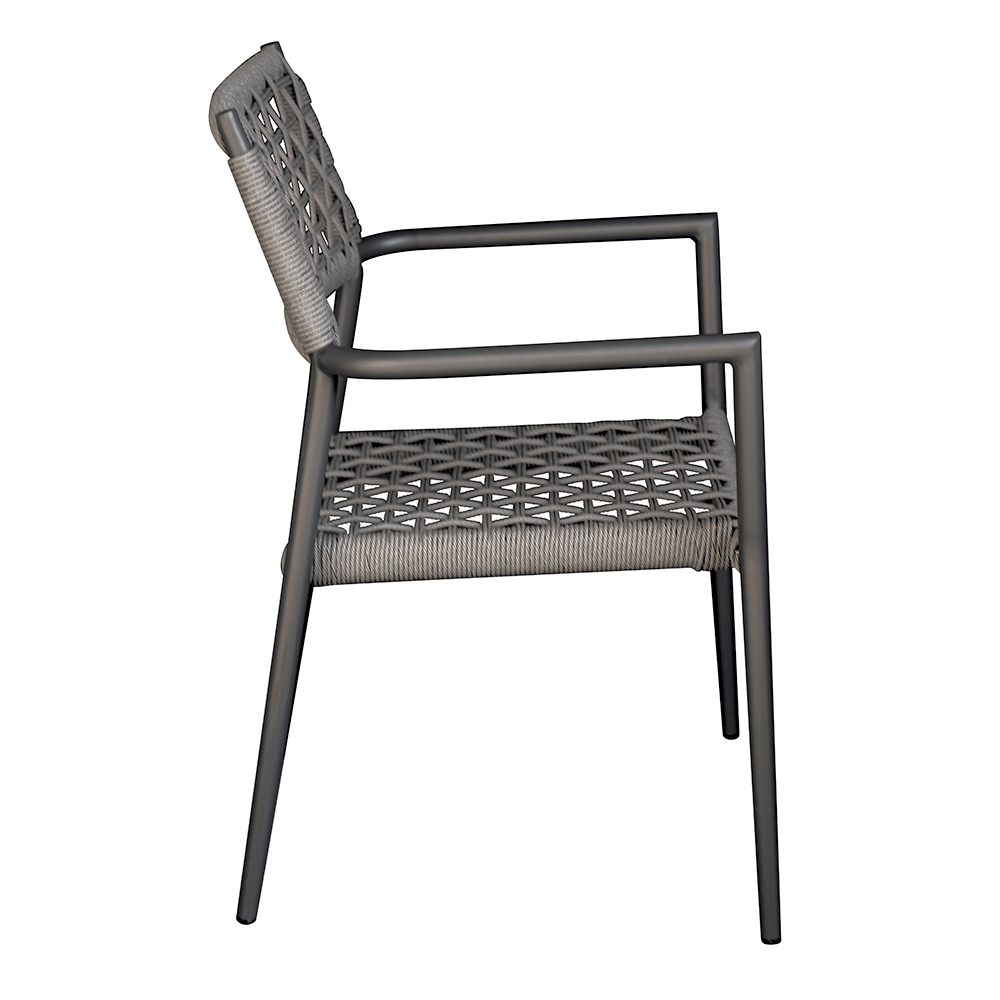 La estructura de aluminio es ligera, duradera y está diseñada para durar, incluso a la intemperie. Gracias a la característica apilable, esta silla es perfecta para optimizar el espacio, por lo que es práctica tanto para uso privado como profesional.