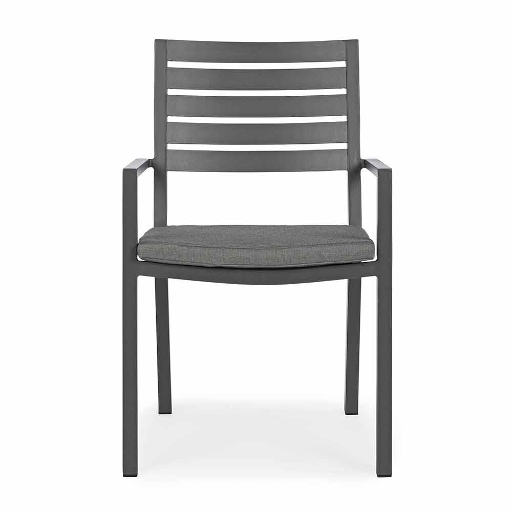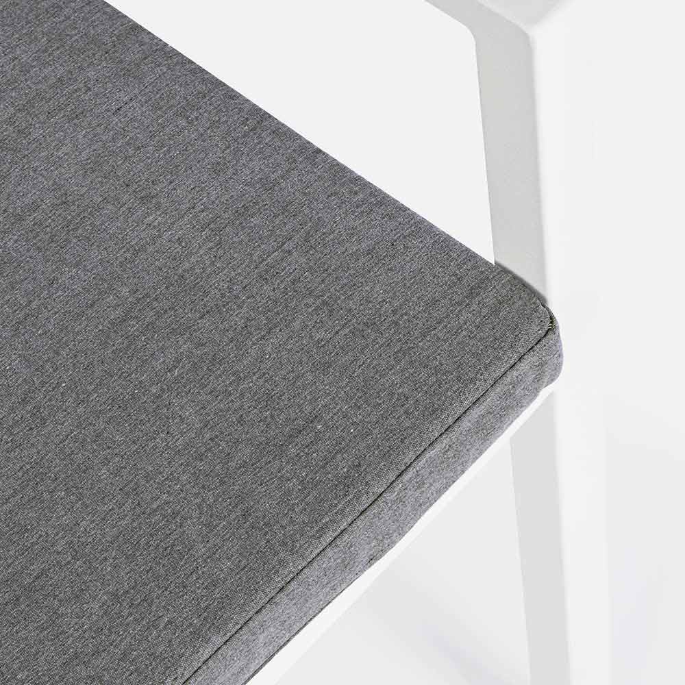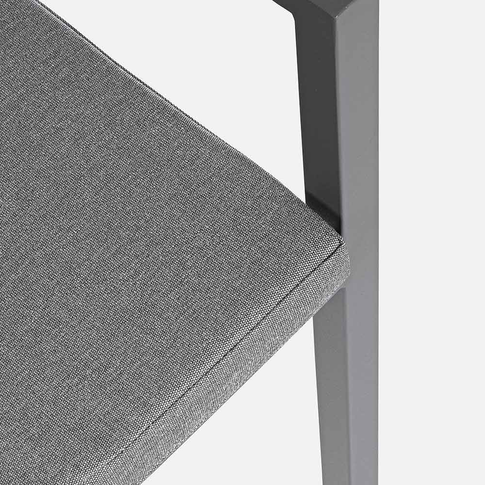 Estructura de aluminio , con recubrimiento de polvo (poliéster), cojines desenfundables con tejido Spun Poly (poliéster). Apilable .