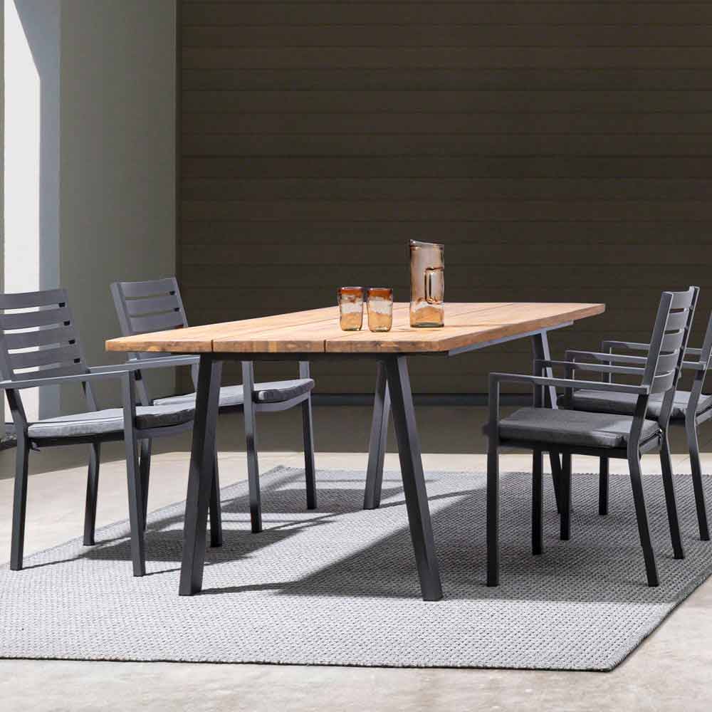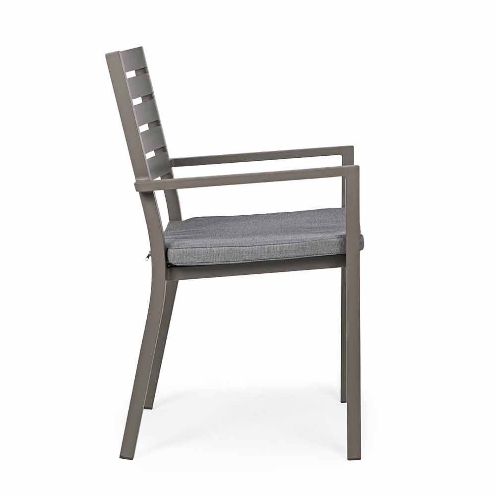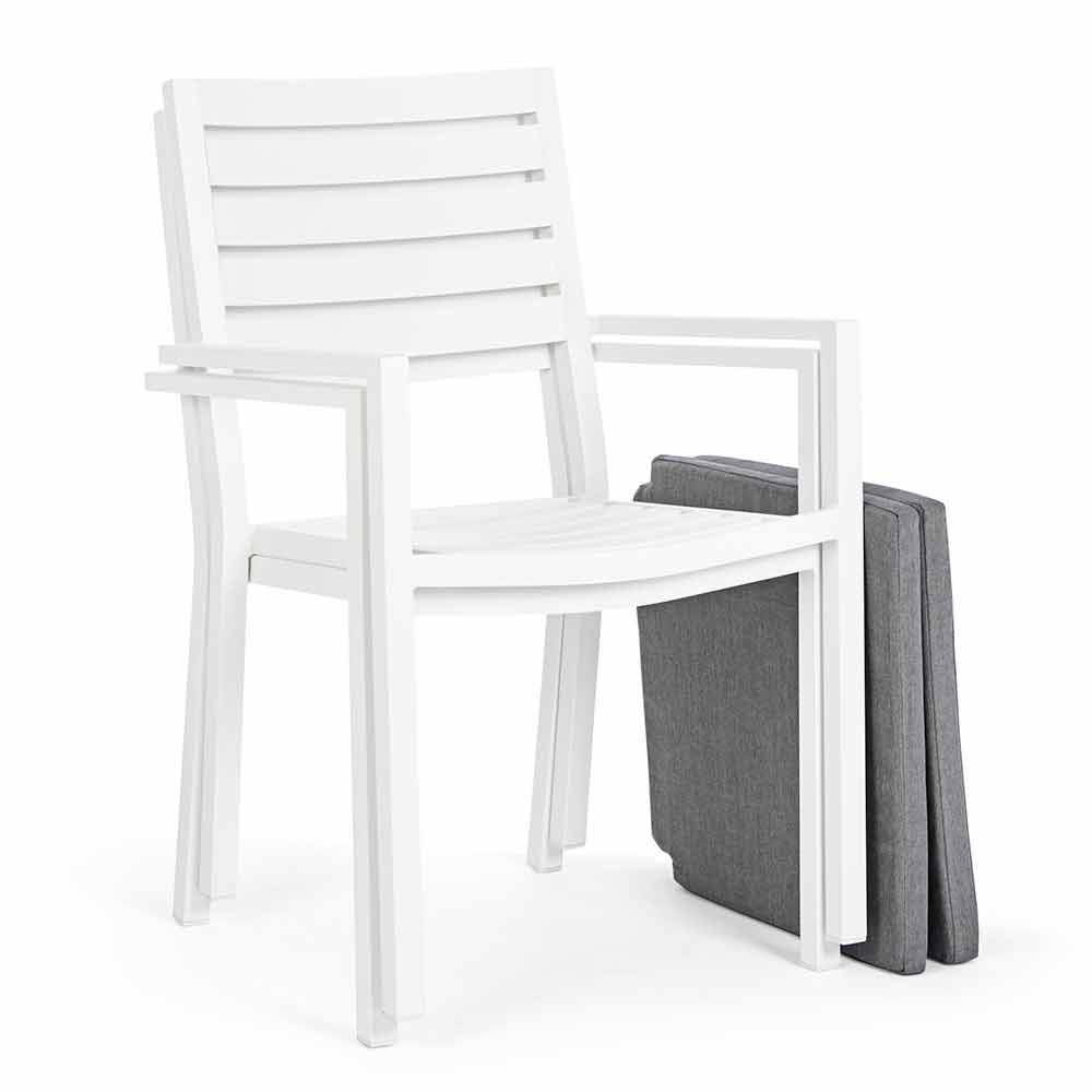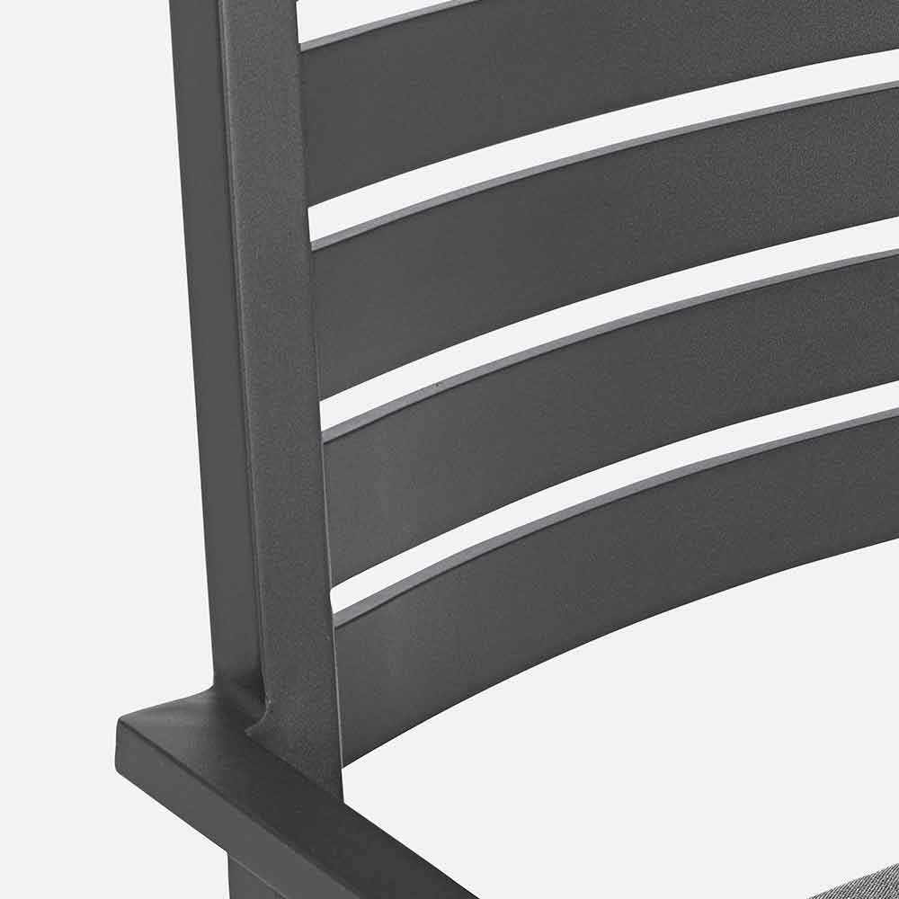 Estructura de aluminio , con recubrimiento de polvo (poliéster), cojines desenfundables con tejido Spun Poly (poliéster). Apilable .