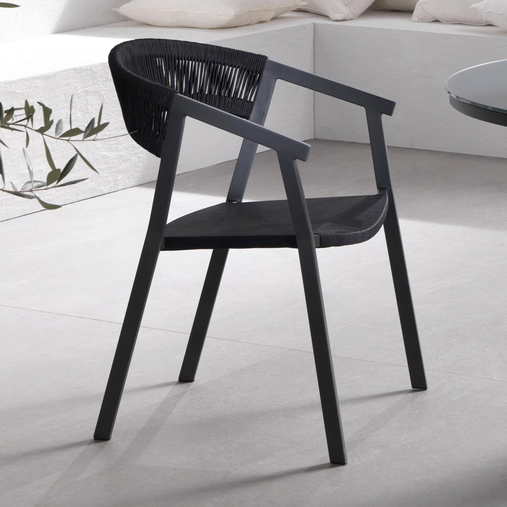 Silla de jardín con estructura de aluminio con recubrimiento de polvo epoxi y trenzado de cuerdas - 2 piezas