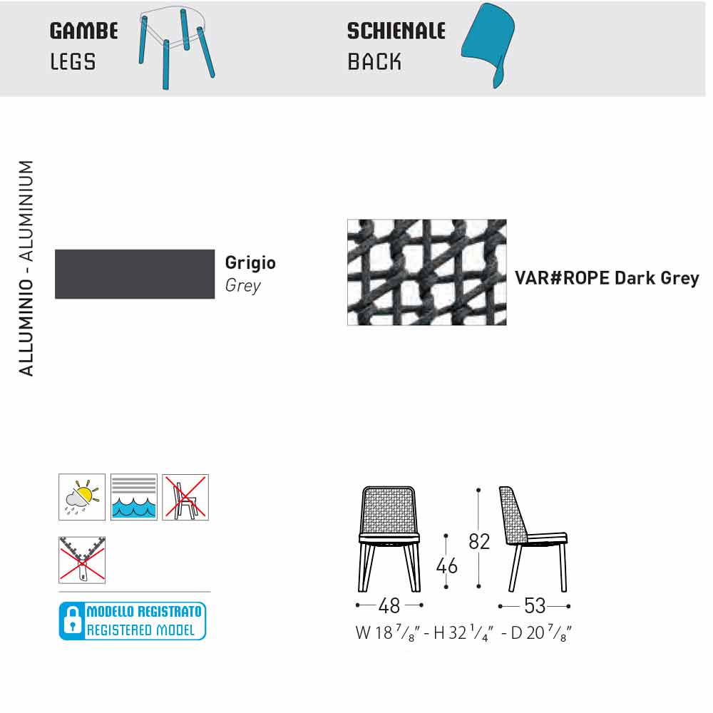 Silla de exterior Varaschin Emma en tejido y aluminio gris.