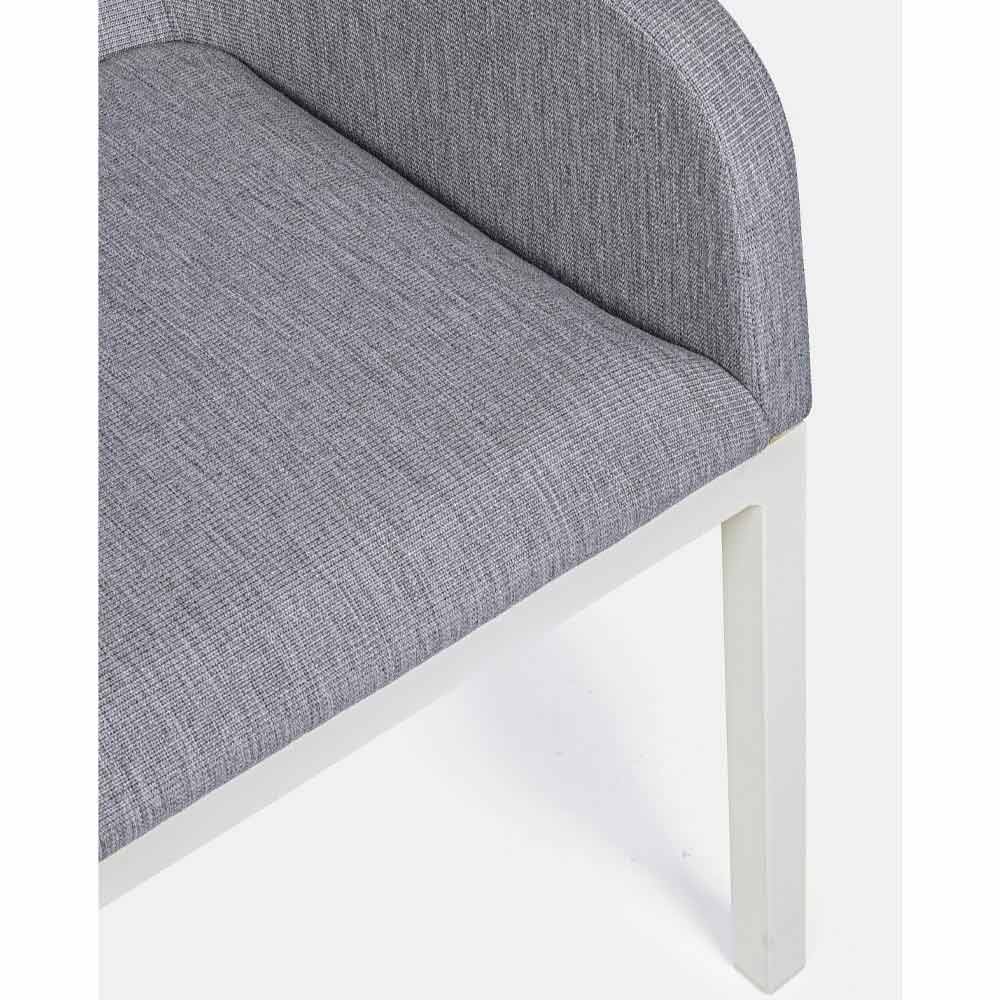 Estructura de aluminio pintado en polvo (poliéster), tapizado con tejido mixto (70% textilene y 30% olefina) y acolchado de espuma de secado rápido para uso exterior. Piernas para montar.