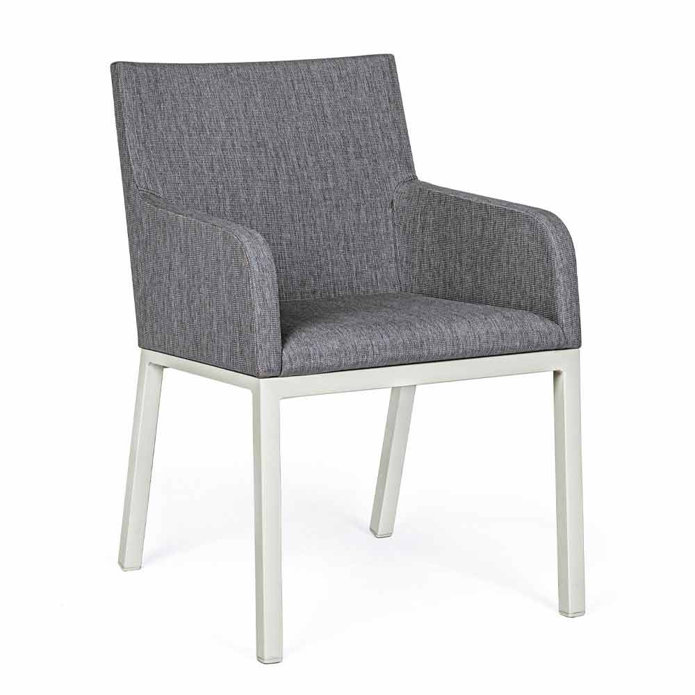 Silla de exterior tapizada en tela con patas de aluminio, 4 piezas.