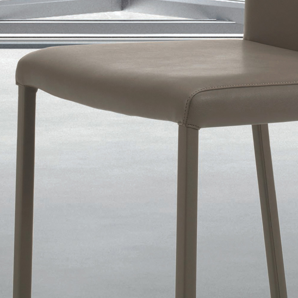 acero, totalmente acolchada y tapizada en ecopiel. La esencialidad y el minimalismo son las características distintivas de este estilo de decoración contemporáneo, diseñado para los amantes de los muebles sencillos pero visualmente impactantes. La belleza y la ligereza de las formas son sus mayores puntos fuertes, que le permiten integrarse en cualquier situación y permanecer siempre único y original.