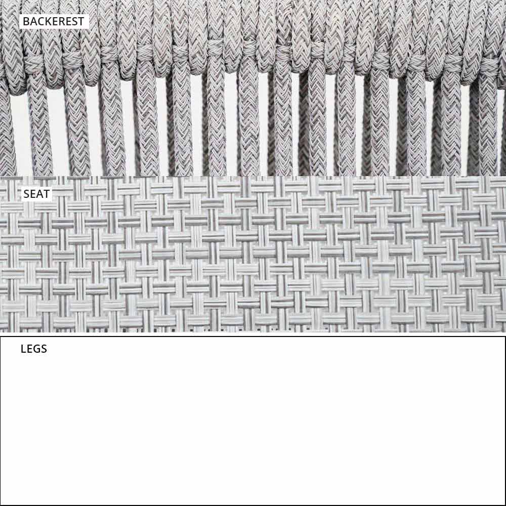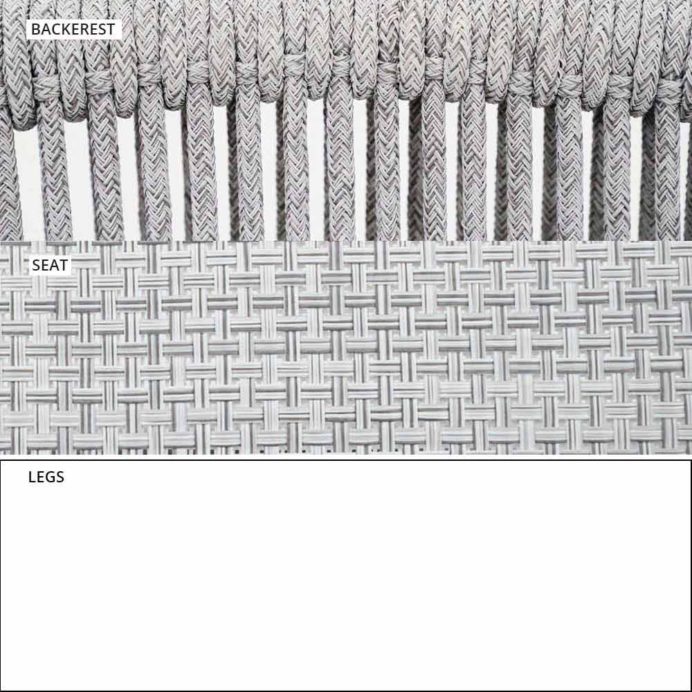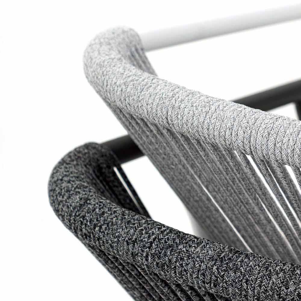 Smart se fabricó con una estructura de aluminio con recubrimiento de polvo, asiento en tela técnica VAR # TEX en PVC y respaldo en cordón de PVC sintético VAR # TEX .