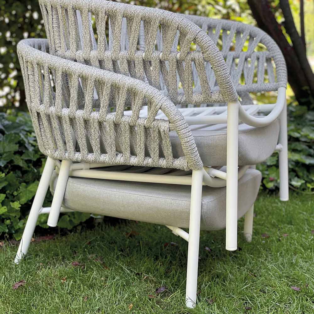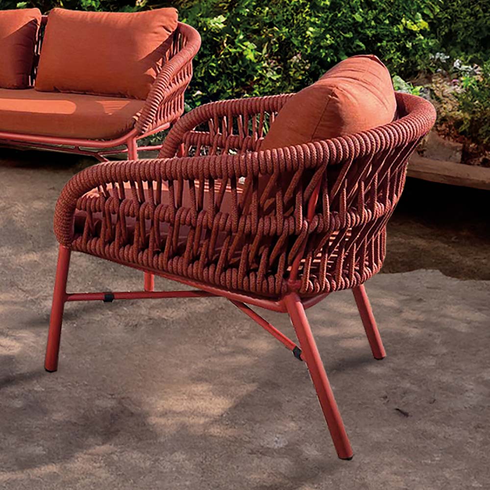 Este sillón de jardín es un ejemplo perfecto de diseño acogedor y artesanía refinada , ideal para crear un rincón de relax con estilo . La estructura de aluminio pintado , ligera pero resistente, sostiene con elegancia un refinado tejido de cuerda de poliéster , que aporta movimiento y personalidad al asiento.