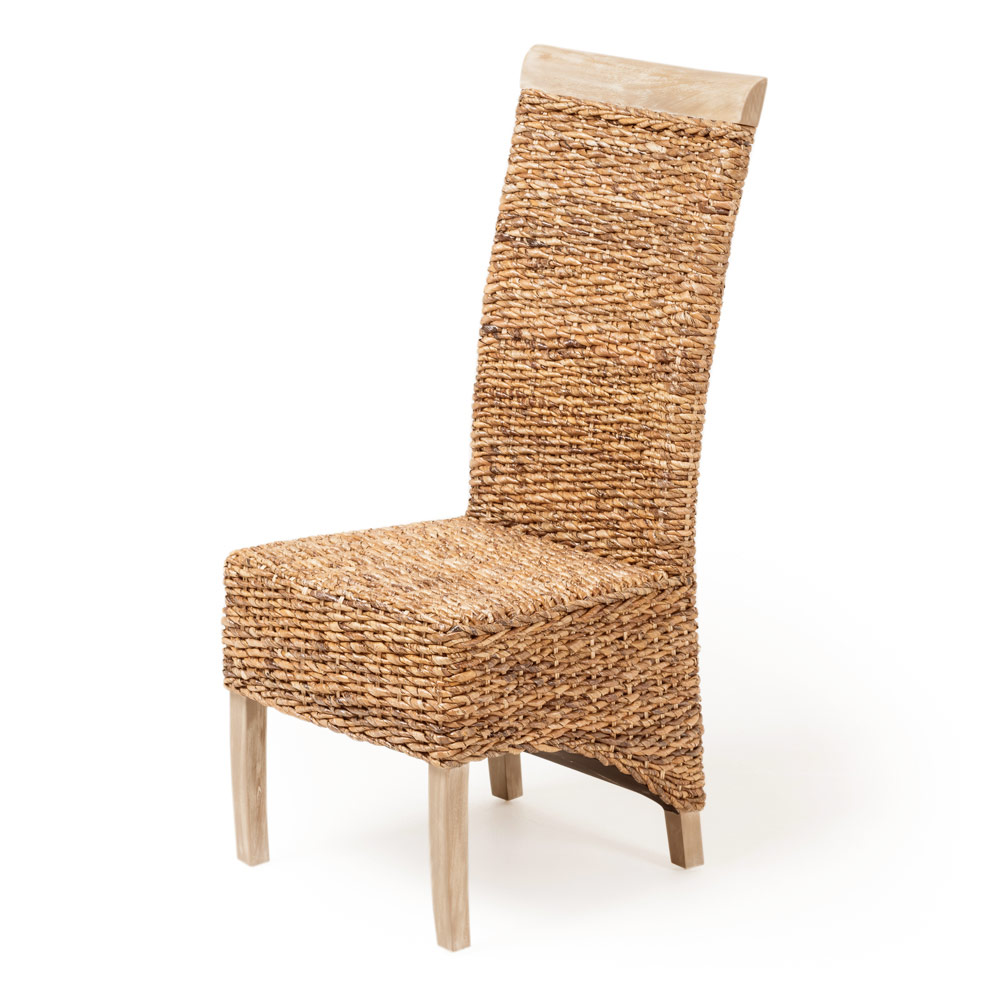 Silla de exterior fabricada en tejido a mano plátano . Las patas de la silla son de madera.
