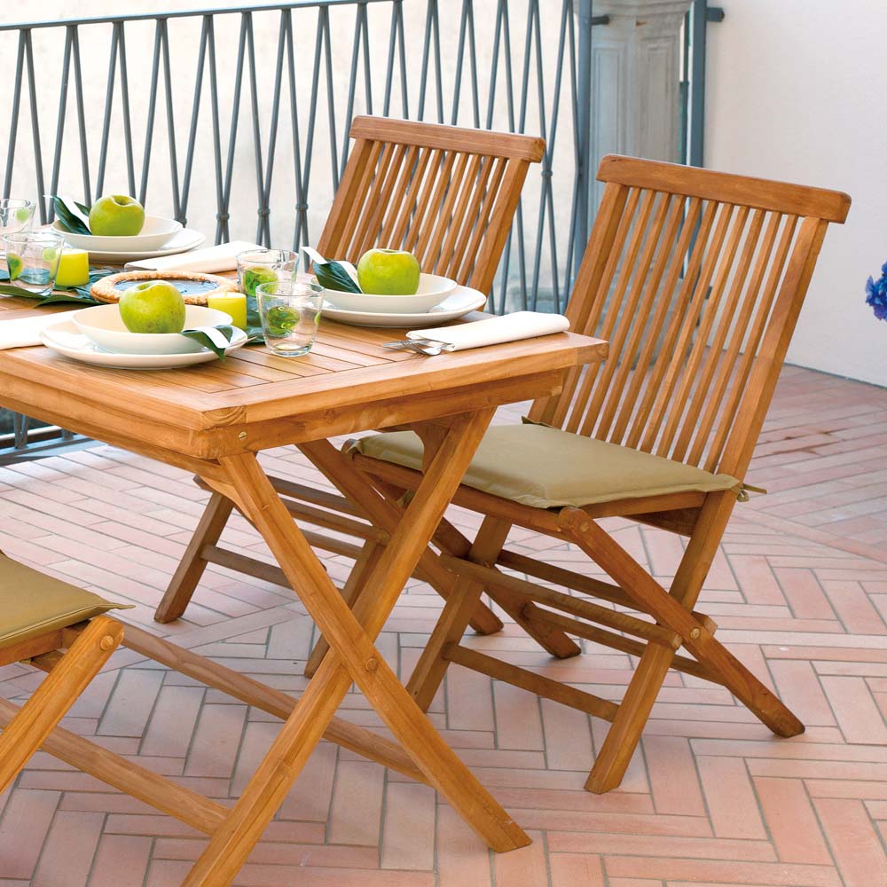 Silla plegable para el jardín fabricada en madera de teca.