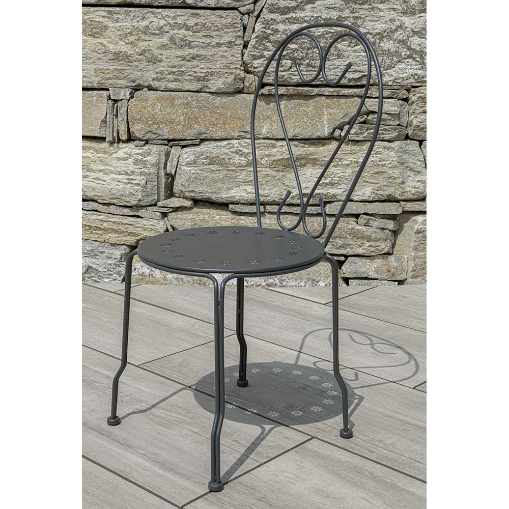 La silla está hecha de metal resistente a la intemperie , ideal para disfrutar de momentos de relajación en el jardín, en la terraza o en un rincón acogedor de su patio. La atención al detalle y el acabado hacen que esta silla sea versátil y adecuada para diferentes estilos decorativos, desde el más clásico y romántico hasta el moderno y minimalista.