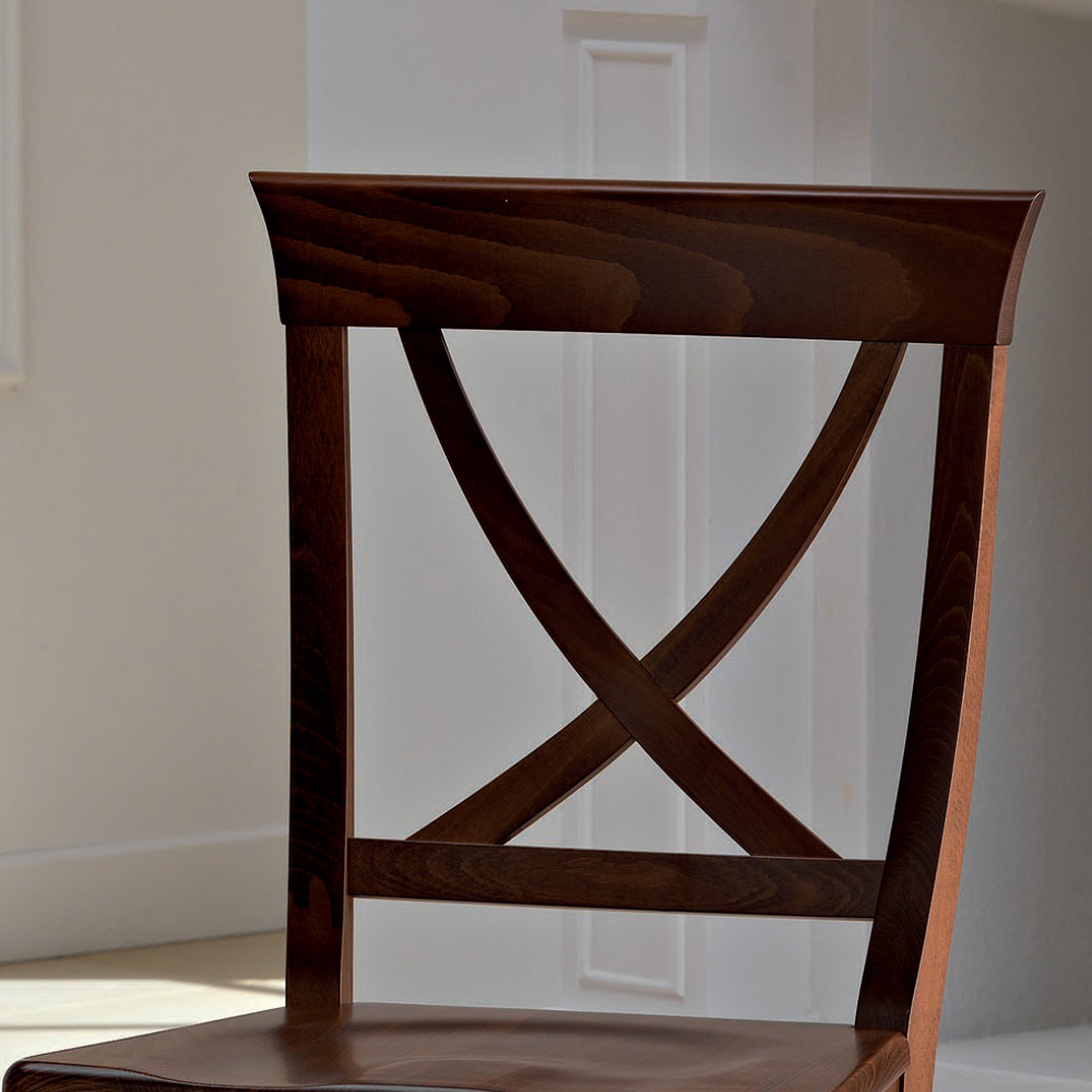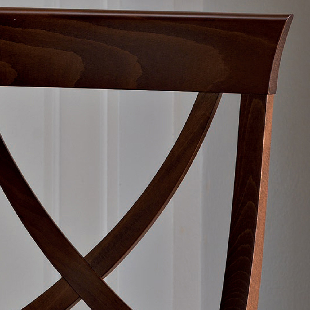 Silla de madera maciza con respaldo cruzado, lujo made in Italy.